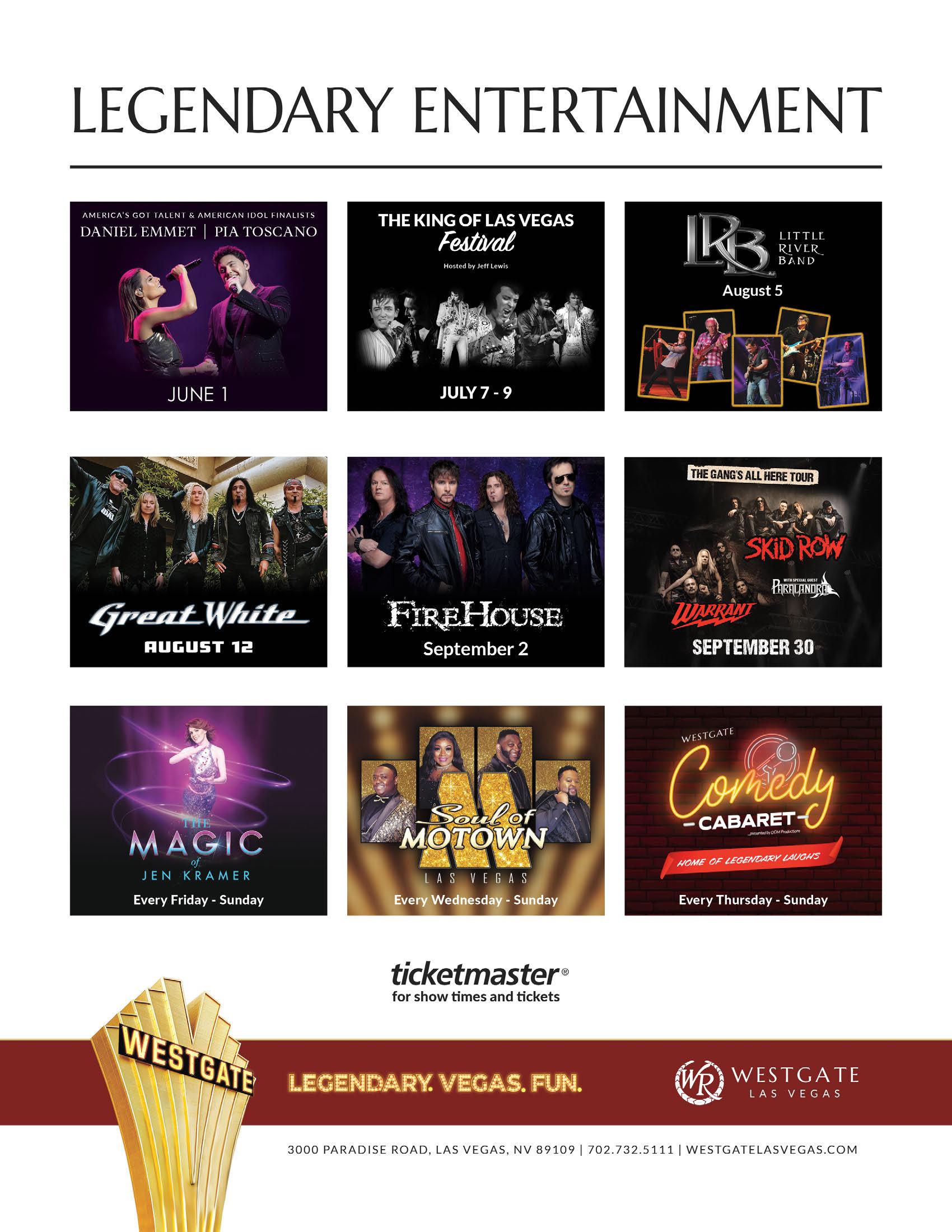 Westgate’s Comedy Cabaret Enjoy the talents of some of the top names in stand-up. Westgate Las Vegas, westgatelasvegas.com