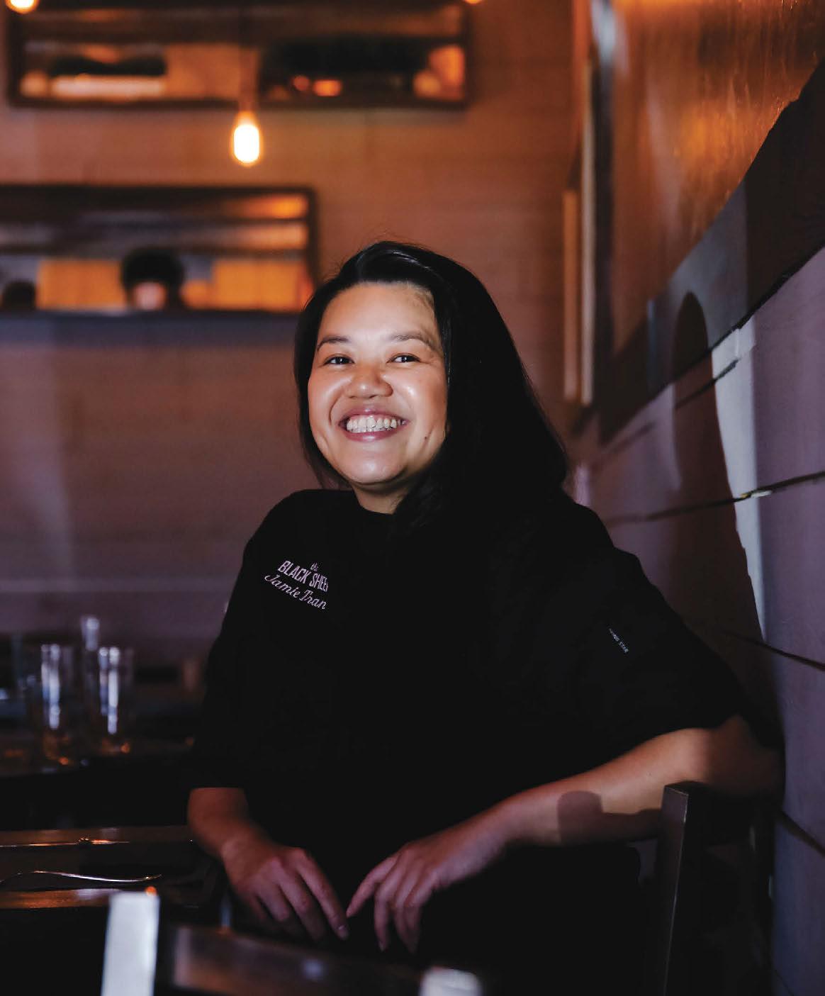 Competing on Top Chef is never easy, but Jamie Tran, whose Vietnamese heritage influences the New American cuisine of the Black Sheep, had the added challenge of filming Season 18 during the uncertainty of the pandemic in 2020. She says once the competition starts, the contestants hand over their phones and have limited access to television. “They give you this one notebook,” she remembers. “You can write 30 of your recipes down and that’s about it, but for the most part you just go off the top of your head.”