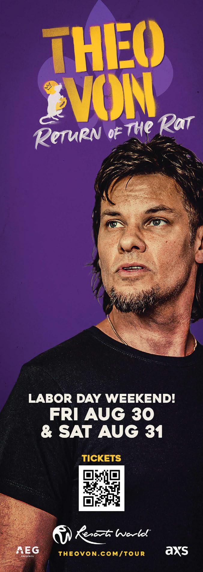 And we’ve only scratched the surface of what you’ll fi nd in this week’s issue, from the return of two of the biggest residencies currently in Las Vegas, Donny Osmond at Harrah’s Las Vegas (“Brilliant Career,” p. 32) and Shania Twain at Planet Hollywood (“Giddy Up!” p. 12) to the arrival of Twenty One Pilots to MGM Grand (“Flight Plans,” p. 38) and a performance by Kevin Hart, along with some very special guests, as part of Hartbeat Weekend at Resorts World Las Vegas (“Laughter and So Much More,” p. 17 ).