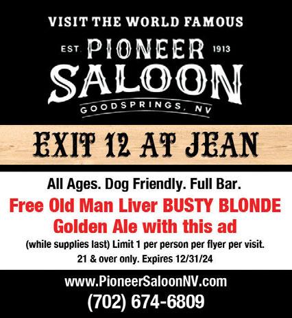 Pioneer Saloon Visit the oldest bar in Southern Nevada for burgers, barbecue and more. You may recognize this spot, as it has been featured in many movies, TV shows and music videos. Goodsprings, 310 W. Spring St. 702.674.6809 $