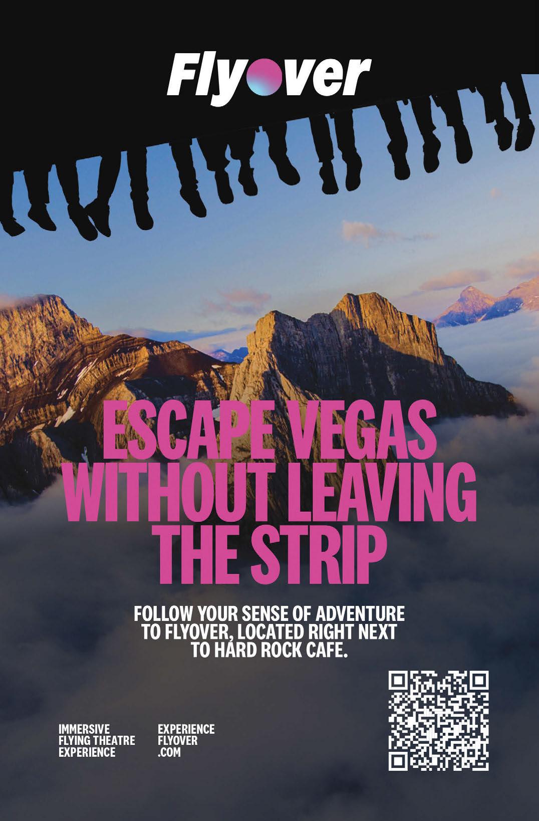 FlyOver Las Vegas Suspended above a 52 1/2-footwide screen, riders experience the sensation of buzzing over some of the world’s most breathtaking views without leaving the Strip. 3771 Las Vegas Blvd. S. 866.498.2023 or flyoverlasvegas.com