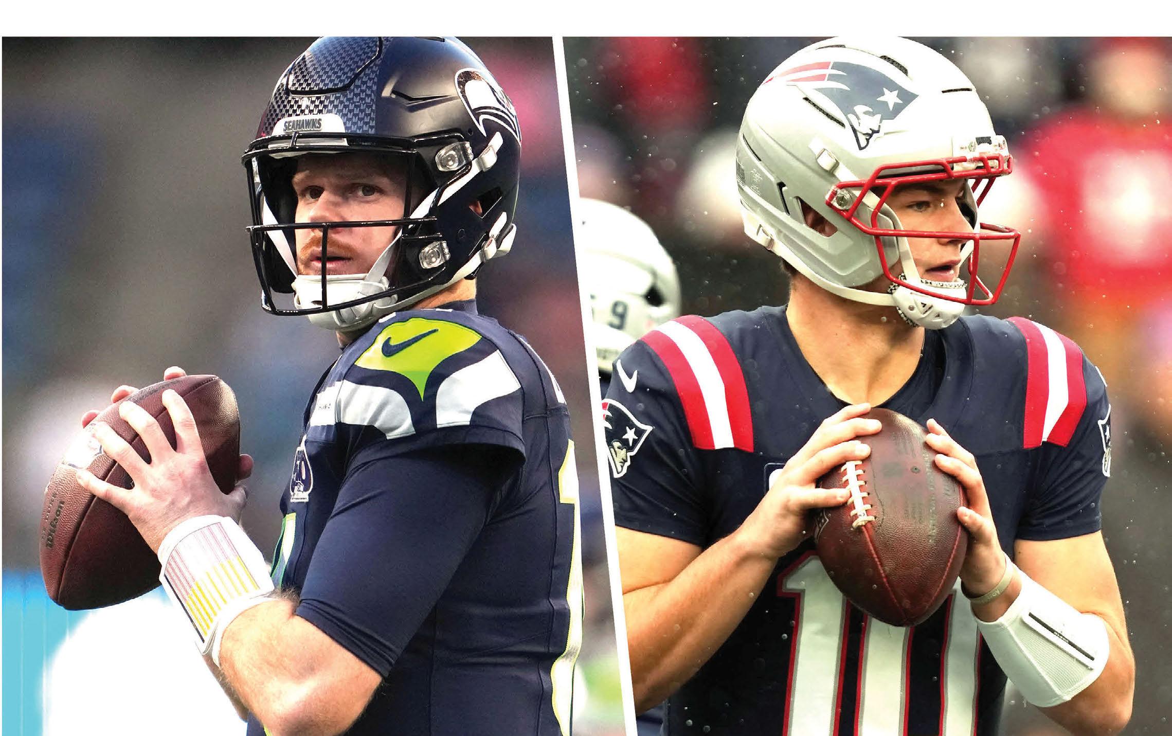 Drake Maye of the New England Patriots (AP Photo/Charles Krupa)