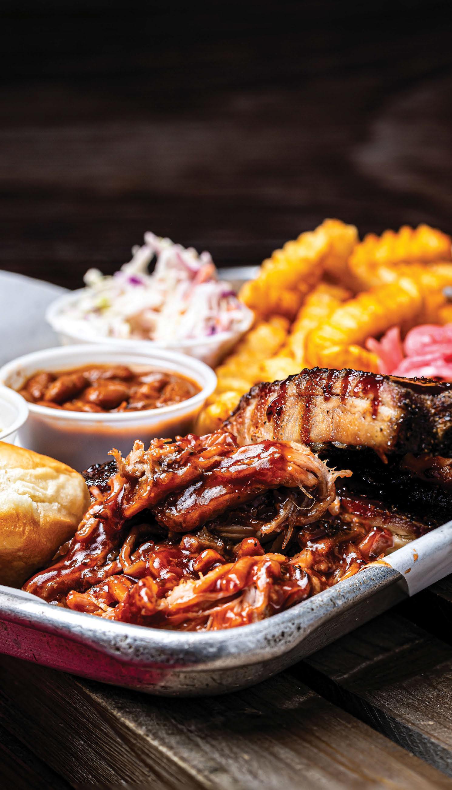 “We’ve had to shut down for about 17 days every year due to rain, so that canopy really came in handy over the holidays,” says co-owner Rob Baker. “And because I kind of lost the whole element of cooking and being part of the guest experience, we added an outdoor barbecue so me and the chefs can stand out there and talk to people and listen to their stories about how they do it [barbecue], and show them how we do it, right in front of them.”