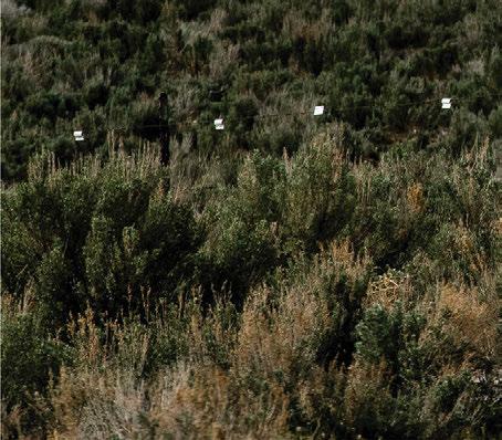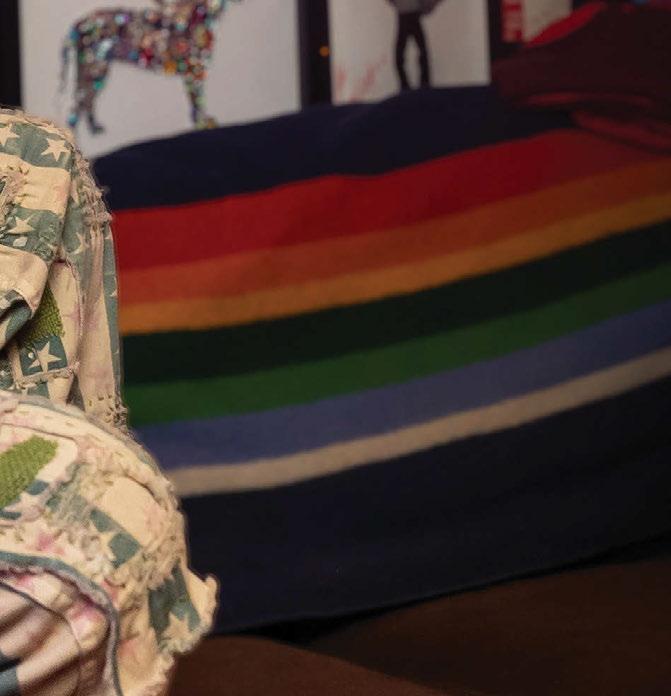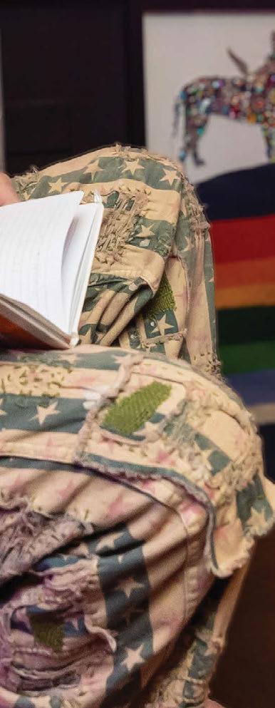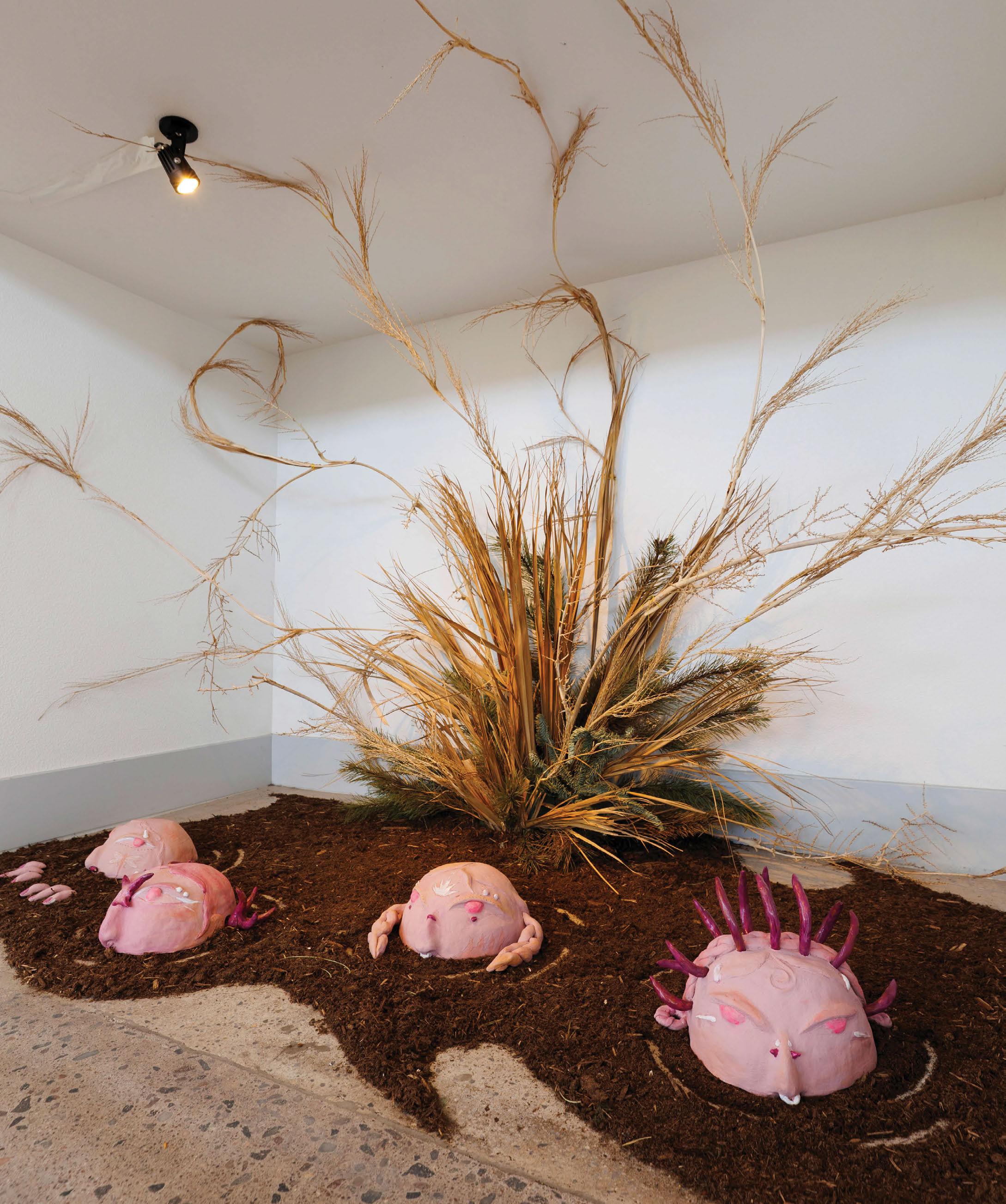 Then there is Haide Calle’s “Que Divina es la Tierra” (2026), an installation of pastel pink painted ceramics, palm leaves, husks and thread rising from the oor like a quiet uprising. Informed by her Otomi heritage and the dislocation of living in the United States, Calle conjures morphing bodies and maguey forms from repurposed debris. What’s cut away becomes sacred again. The e ect is tender, almost childlike, and steeped in intent. It invites viewers to reconsider waste, belonging and the evolving narratives embedded in land.
