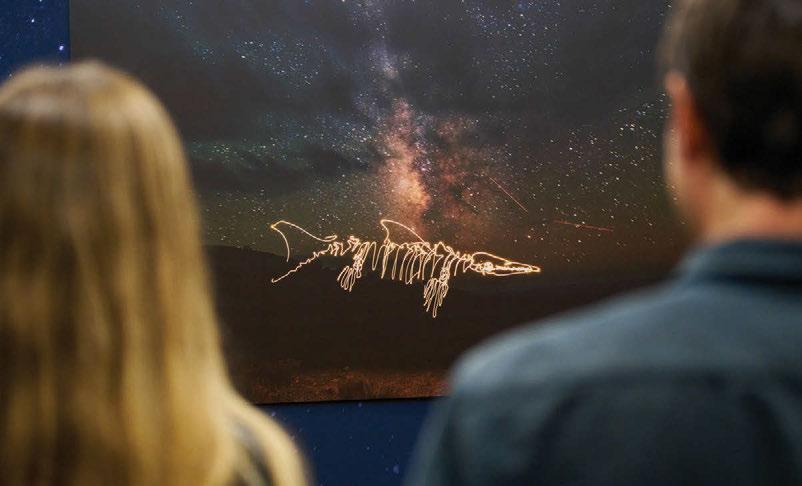 The Neon in Nature Series, Pearson’s first museum exhibition in the United States, combines his playful light painting process with the barren beauty of the Nevada desert. By using long exposure photography, he’s able to draw detailed figures, from electric green aliens to glowing dinosaurs, with LED light, immortalizing them in the photograph.