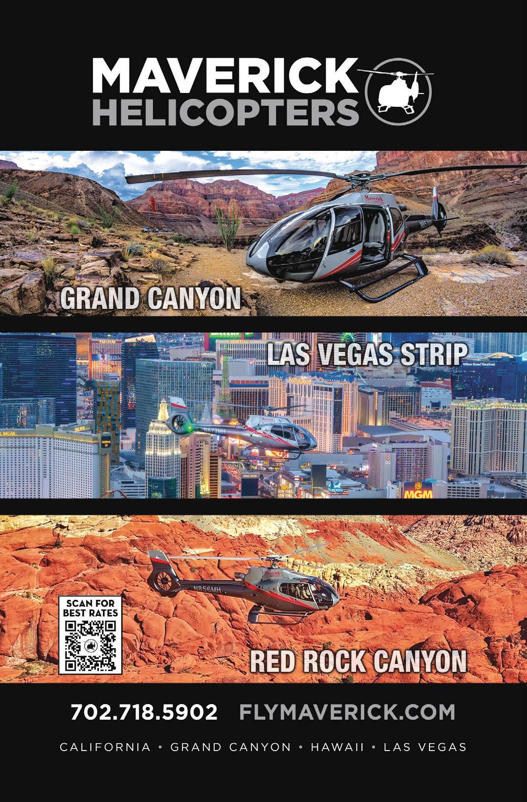 Maverick Helicopters Enjoy VIP excursions to the Grand Canyon and over the Strip daily. Fly in a state of-the-art helicopter and enjoy narration by your pilot. Wedding packages are also available 6075 Las Vegas Blvd. S. 702.261.0007 or 866.644.8687