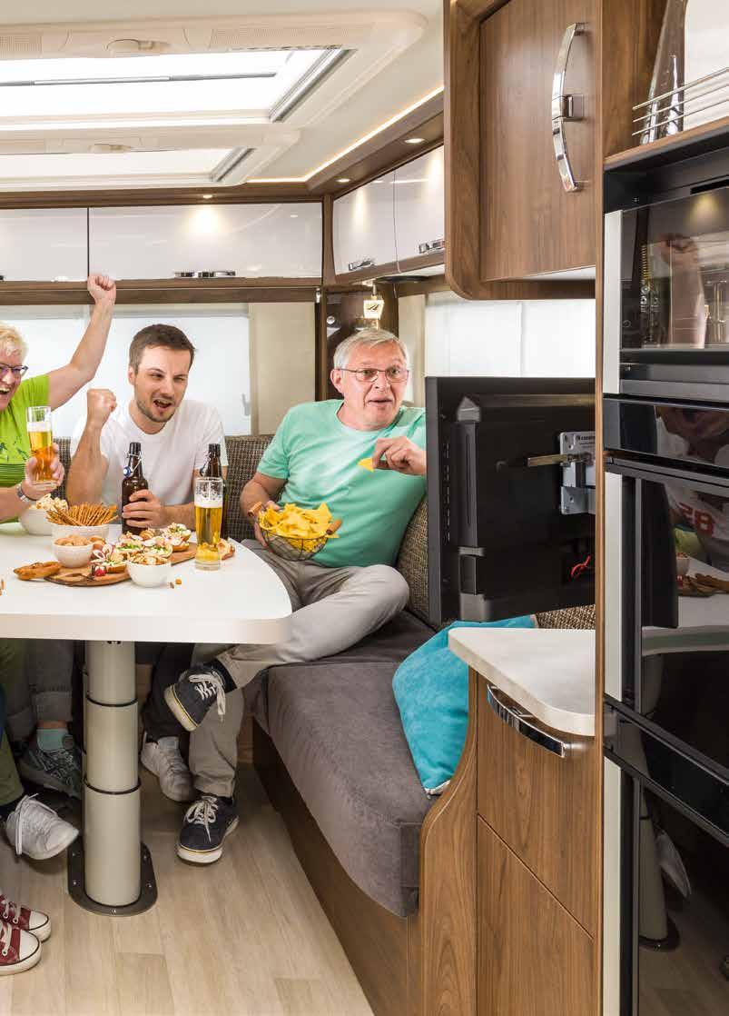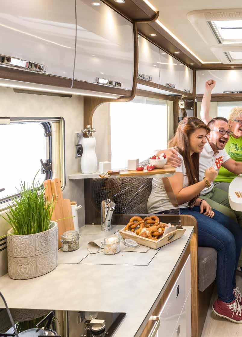 Hier werden unvergessliche Geschichten geschrieben und besondere Augenblicke erlebt, die noch lange in Erinnerung bleiben: Zu zweit oder mit Freunden – die riesigen Panoramarundsitzgruppen in der FRANKIA F-Line sind bereit für die nächste Runde.