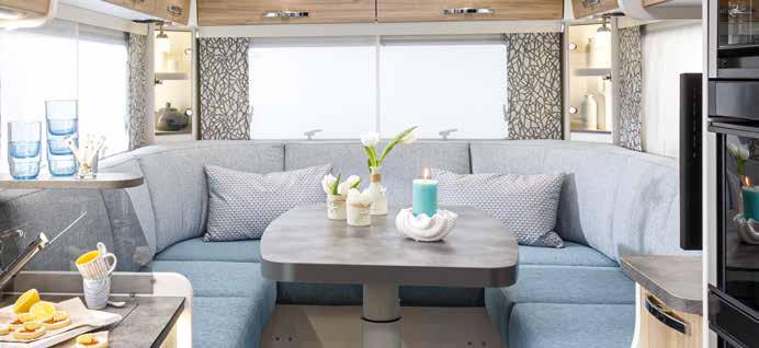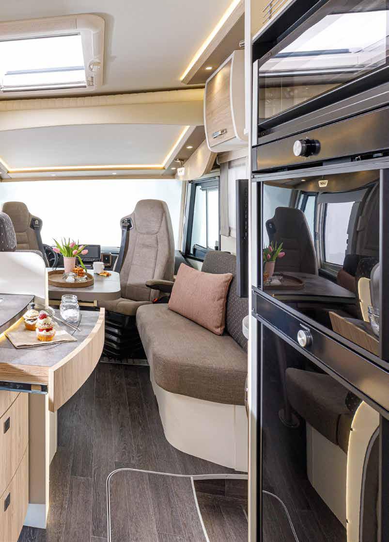Round seating group on a Fiat Ducato platform in two floor plan lengths. The 680 PLUS and 740 PLUS are available as an A-Class or Coachbuilt