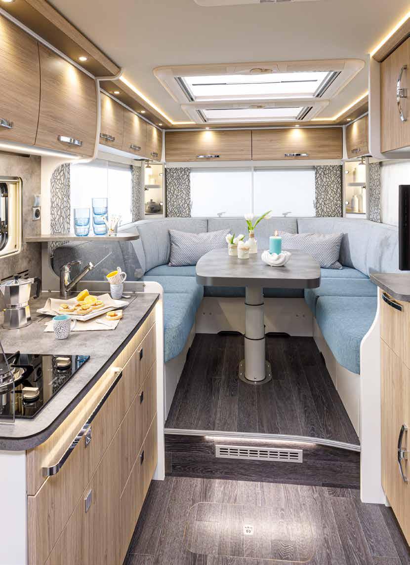Round seating group on a Fiat Ducato platform in two floor plan lengths. The 680 PLUS and 740 PLUS are available as an A-Class or Coachbuilt.
