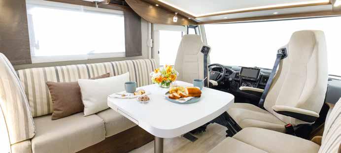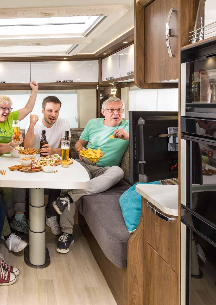 Hier werden unvergessliche Geschichten geschrieben und besondere Augenblicke erlebt, die noch lange in Erinnerung bleiben: Zu zweit oder mit Freunden – die riesigen Panoramarundsitzgruppen in der FRANKIA F-Line sind bereit für die nächste Runde.