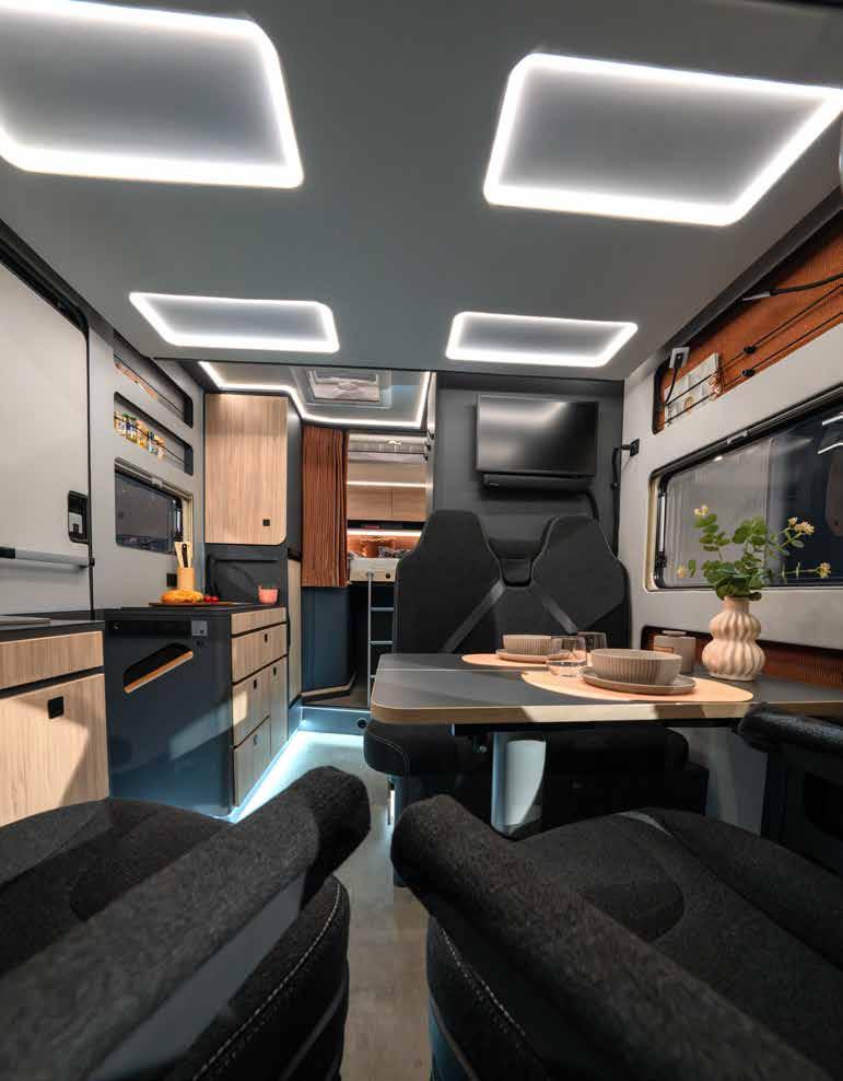Une vue dégagée, une lumière indirecte, de franches combinaisons de couleurs : voilà comment le NOW redéfinit l’avenir du camping-car.