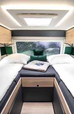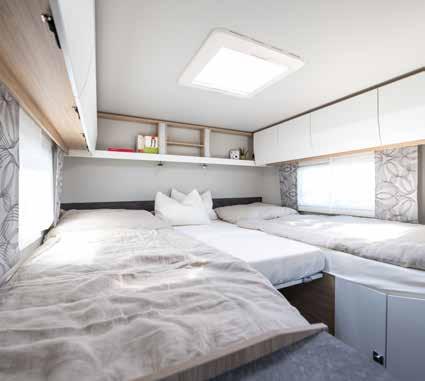 Le « deuxième étage », parfait pour se détendre : lits jumeaux dans la capucine de 2 m de long. Encore plus de place : la penderie XXL Salle d’eau : plus d’espace, plus de confort Divertissement assuré dans le coin salon avec le téléviseur LED 32 pouces inclinable et pivotant