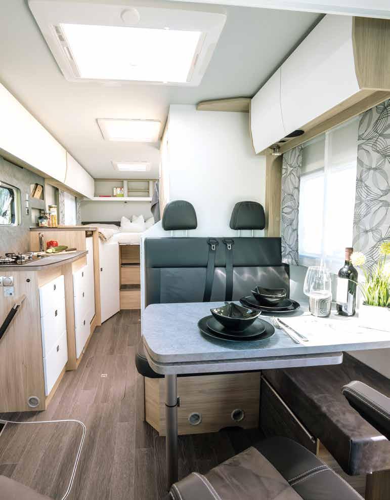 Si le modèle capucine TOGETHER convainc par l’agréable équilibre des volumes de son intérieur, le nouvel intégral TOGETHER en rajoute encore : davantage de liberté de mouvement, d’espace et de lumière – particulièrement dans la partie avant du véhicule.