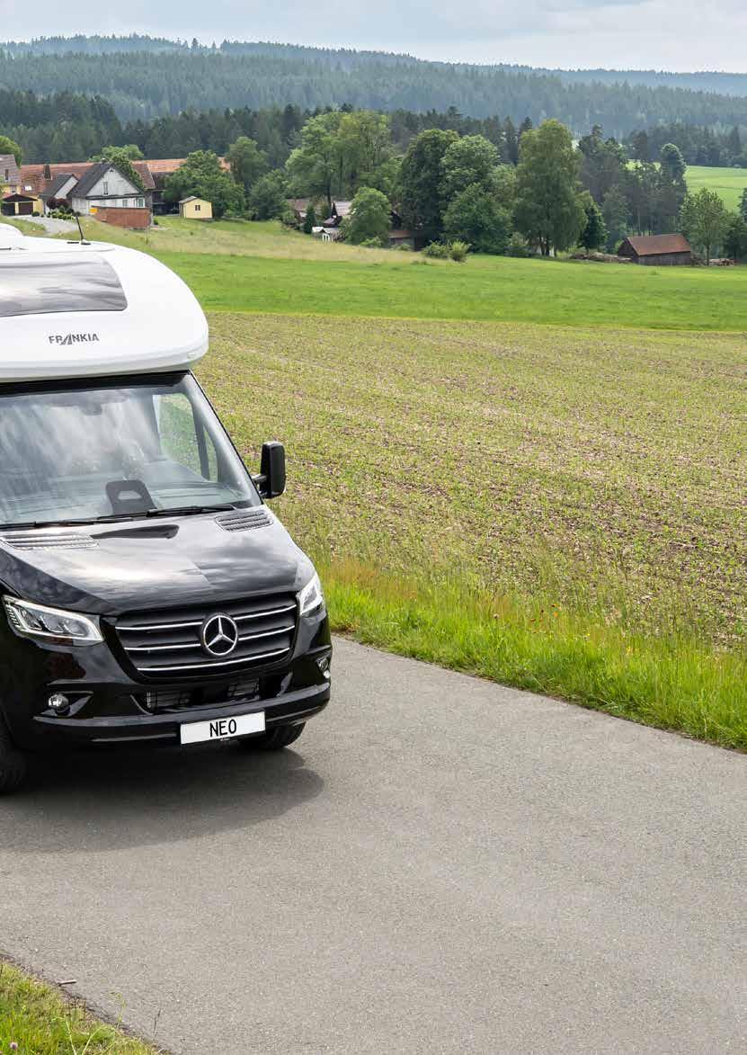 Das Raumwunder FRANKIA NEO erobert mit seinem innovativen Konzept seit fünf Jahren die Herzen vieler Reisender. Seitdem wird die Erfolgsgeschichte des 3,5- bzw. 4,5-Tonners auf Mercedes-Benz-Basis permanent weitergeschrieben: Im Modelljahr 2026 gibt es das besondere Leichtgewicht als Teilintegrierten mit einem neuen Designkonzept oder als Integrierten in der Edition BLACK LINE – mit jeder Menge Extras in Serie.