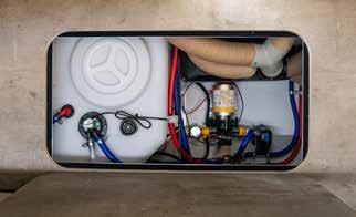 Bitte beachten Sie, dass die Fahrbefüllung des Frischwassertanks erheblich reduziert ist. Bei ausreichender Nutzlast Ihres Wohnmobils kann der Frischwassertank auch im Fahrbetrieb darüber hinaus befüllt werden.