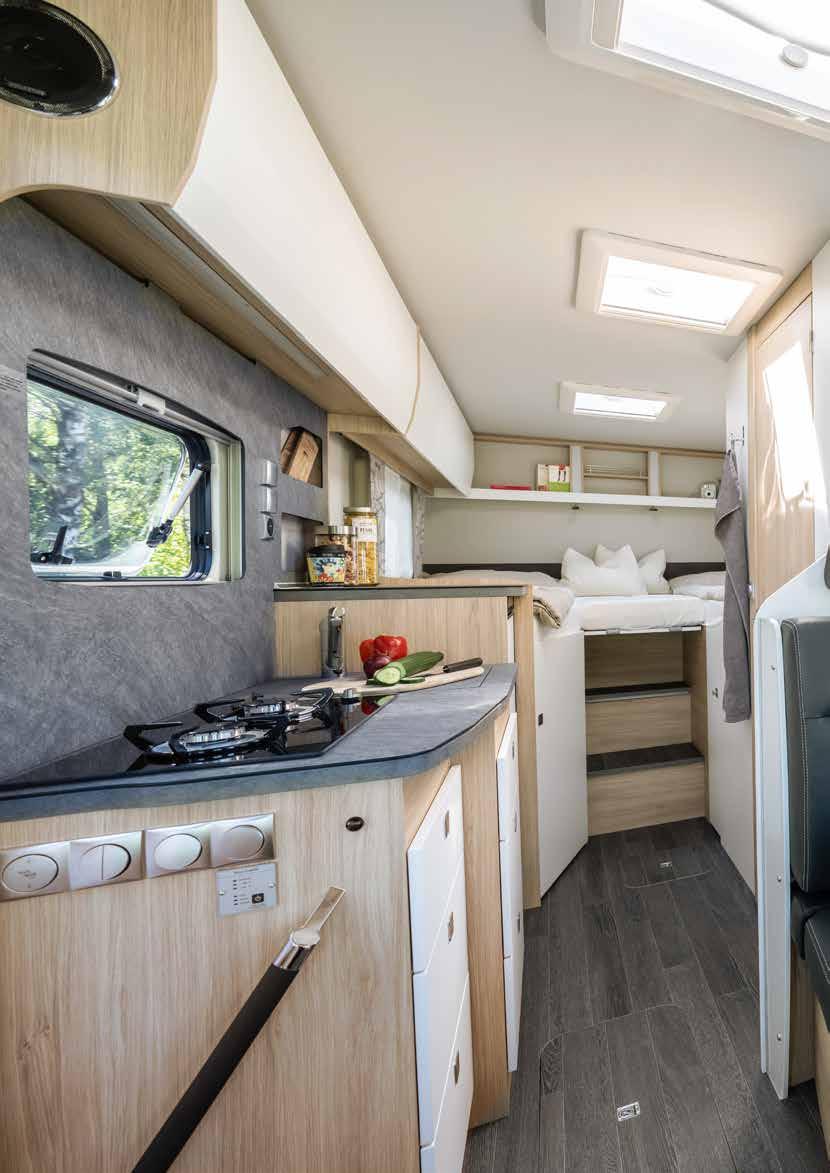 Mehr Raum durch das Querbett im Heck oder mehr Platz zum Schlafen in den erweiterbaren getrennten Längsbetten?