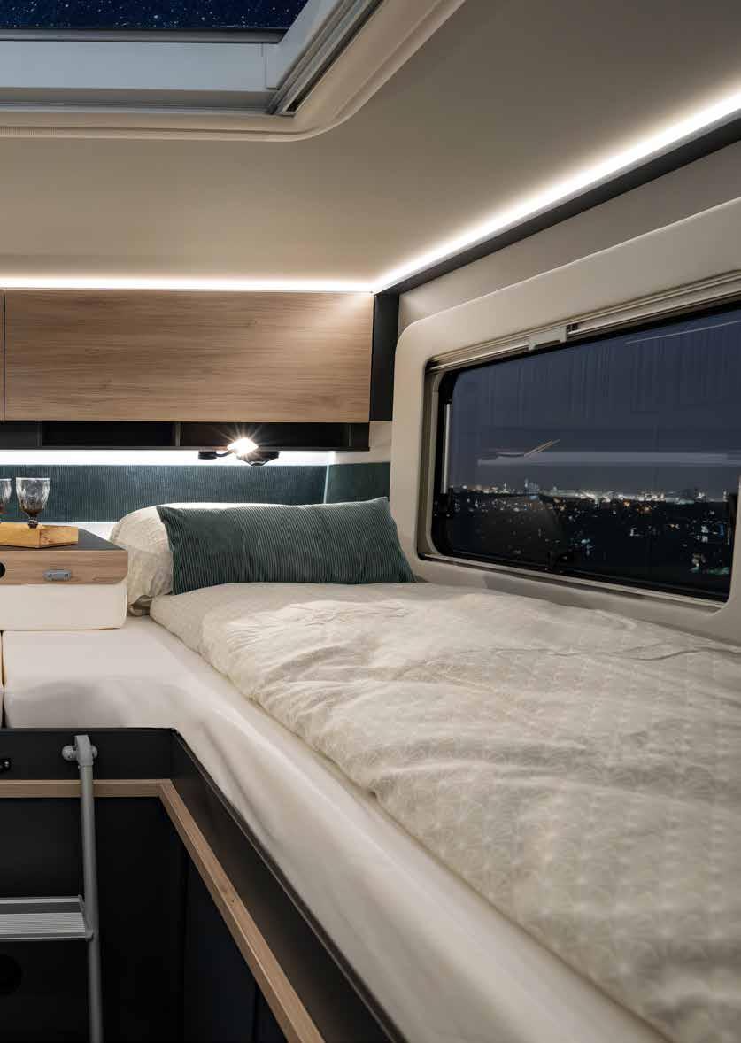 NOW gibt dir ein neues Gefühl für Raum! Denn er verzichtet auf klobige Bordkästen, Fenstergardinen, Trittstufen – und setzt stattdessen auf jede Menge Freiraum, 2,13 m Stehhöhe und eine große Garage. Raum schenkt er dir auch, um Kids und Freunde mitzunehmen –dank des elektrischen Hubbetts.