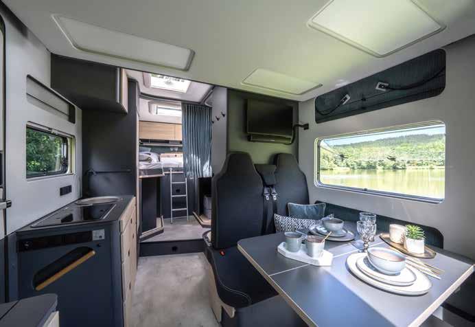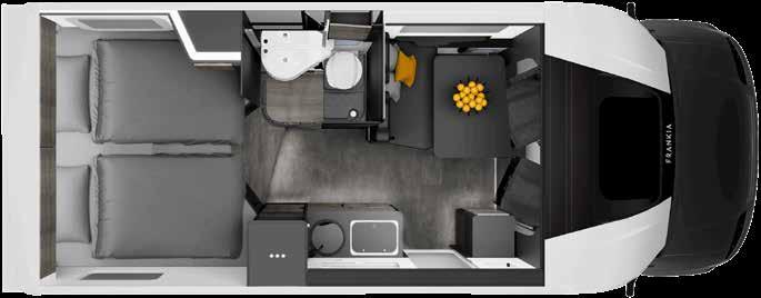 FRANKIA NOW ist perfekt Familien: mit bequemen Längbetten, zusätzlichem elektrischen Hubbett und vier Gurtsitzplätzen. Ideal für Paare: der alternative Bugausbau für noch mehr Platz.