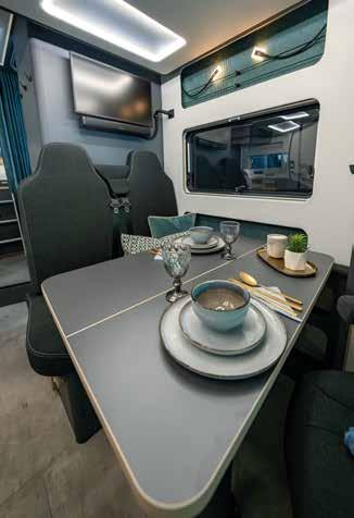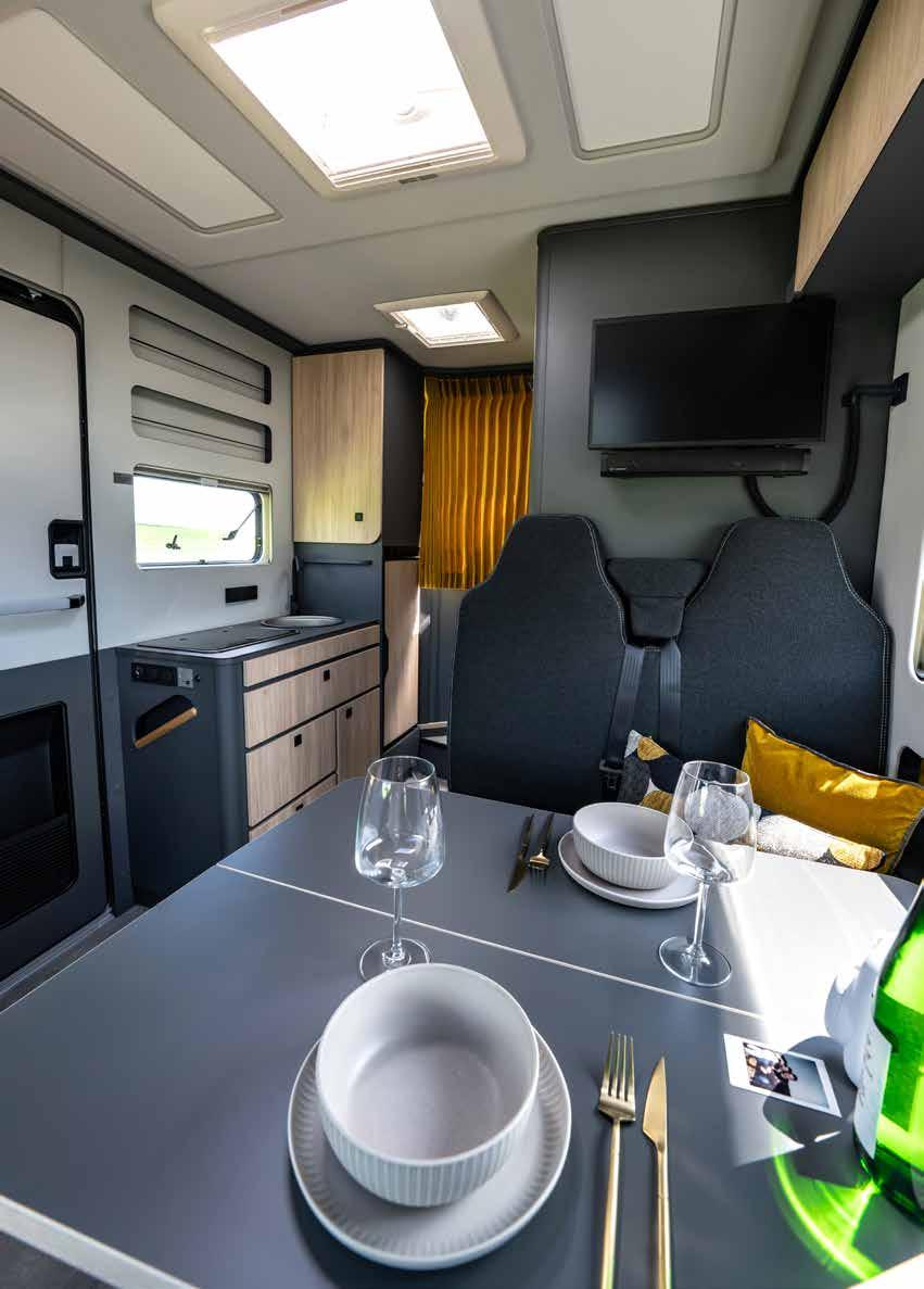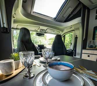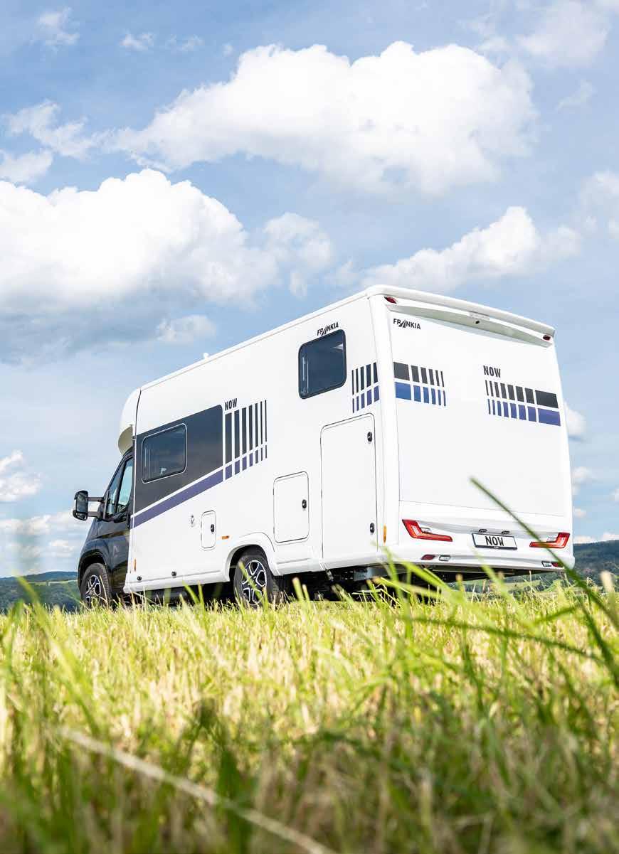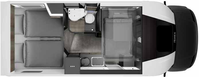 FRANKIA NOW is ideal for families, with comfortable twin beds, an additional power drop-down bed and four seats with seatbelts. Perfect for couples: the alternative front section for even more space.
