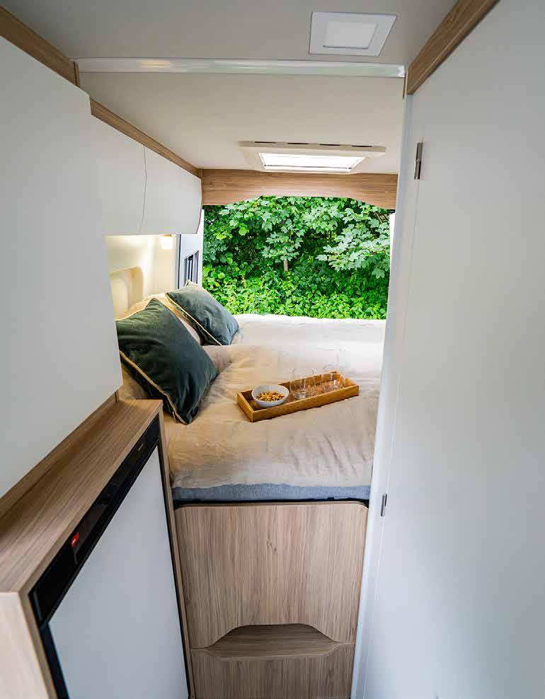 Whether it’s extra space with the super high roof, XXL twin beds or a crosswise bed in the rear –you decide what you want!