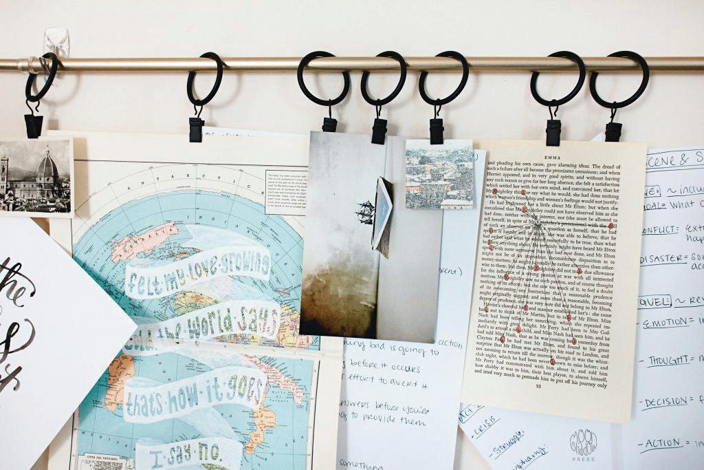 Or, if you don’t have a yard, take a walk in the woods. As home and DIY Instagrammer Sourya Venumbaka suggests, “A great no-cost way to refresh your home is by foraging! Go for a nature walk, clip some greenery (not from private properties of course), and stick them in vases you already own to add some life to your space.” Even things as small as pinecones look beautiful displayed in fun bowls on the coffee table. Like the vision board idea? Use a tree limb with the clip curtain rings to hang your visions from.