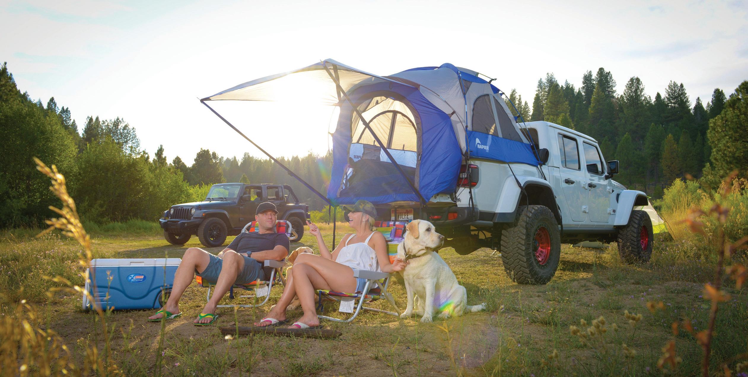 Once you’ve arrived at your destination, it’s time to set up camp. Napier tents are designed for quick and easy assembly, so you can spend less time setting up and more time enjoying your surroundings. The Sportz SUV Tent, for example, attaches directly to the back of your Jeep, creating a roomy shelter with plenty of ventilation and protection from the elements, while still having full access to your vehicle.