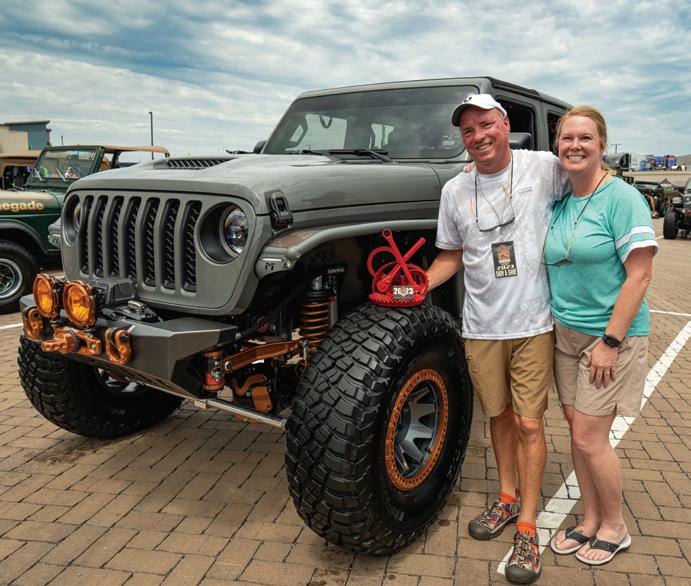 life doing this. Shortly after purchasing their first Jeep together, Kevin’s wife was scrolling through social media when she found a local club hosting a community Jeep ride, and she told Kevin they were going. That first ride was anything but smooth. Although he worried about messing up their Wrangler, Kevin and his wife continued going to local meets and rides.