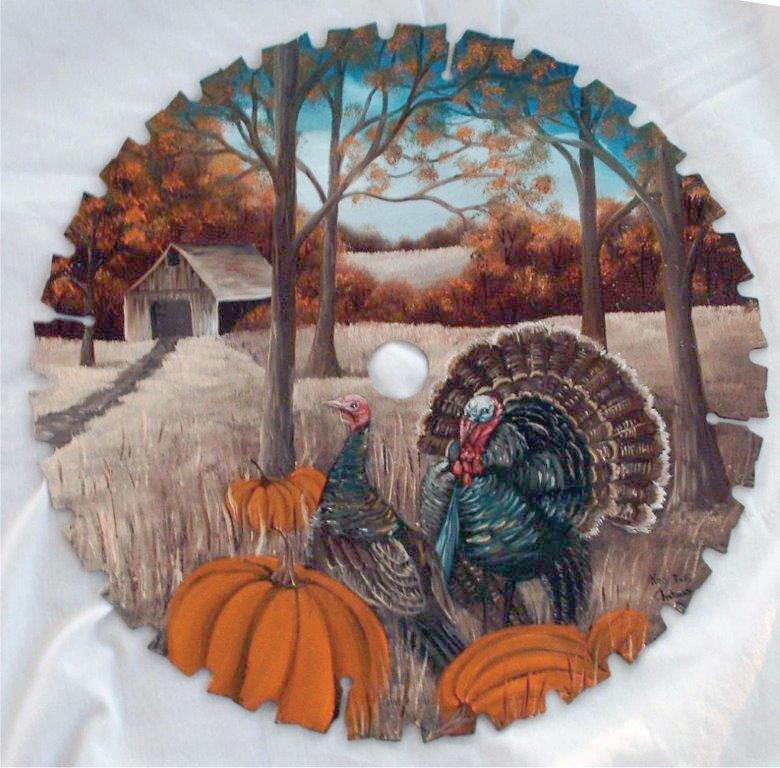 Artist Kay Chatham paints “Mr Turkey” on an antique saw blades.She will join 100 other outstanding artists and craftsman at the 28th Annual ‘Hard Candy Christmas’ Arts and Crafts Show. It is ‘a Mountain Christmas Tradition’ in these parts of the woods.Hours are 10-5 pm each day. The heritage category includes goatmilk soap, quilts,handloomed winter wear and mountain honey.