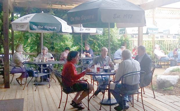 Our year-round indoor dining area features a fireplace, handmade lanterns, and natural wood walls. Spring, summer and fall you may also dine outside on our shady decks surrounded by lush vegetation and flowers and views of the Town Square.