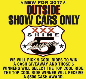 XXX supershine 5 - awards for outside show cars • 1:00pm awards presentation. cash prizes given away on registered cars • 5:00pm