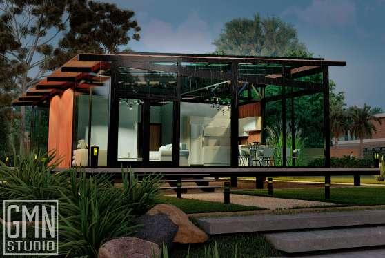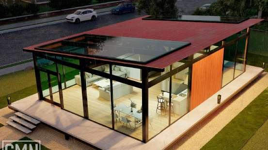 En base a los requerimientos del cliente se implanta en el lote una vivienda totalmente conectada hacia el exterior con grandes ventanales que permiten aprovechar el entorno privado en el terreno del usuario.