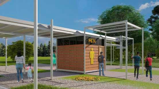 El equipamiento utiliza materiales de procedencia local y estrategias pasivas para lograr una relación armónica con el diseño urbano y su entorno natural.