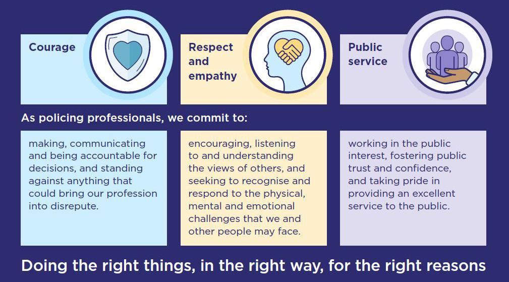 Ethical policing principles are a series of guiding statements that should be used to help people in policing do the right things, in the right way, for the right reasons.