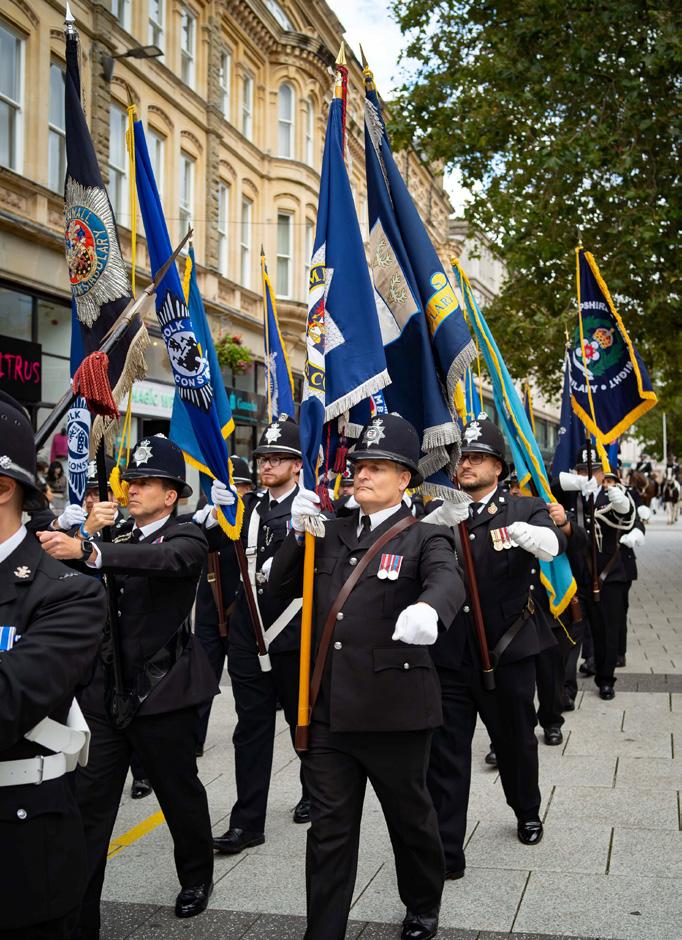 Police Constable Alan Ryder was selected as GMP’s standard bearer for the event as officers, staff and families from forces across the UK honoured fallen colleagues.