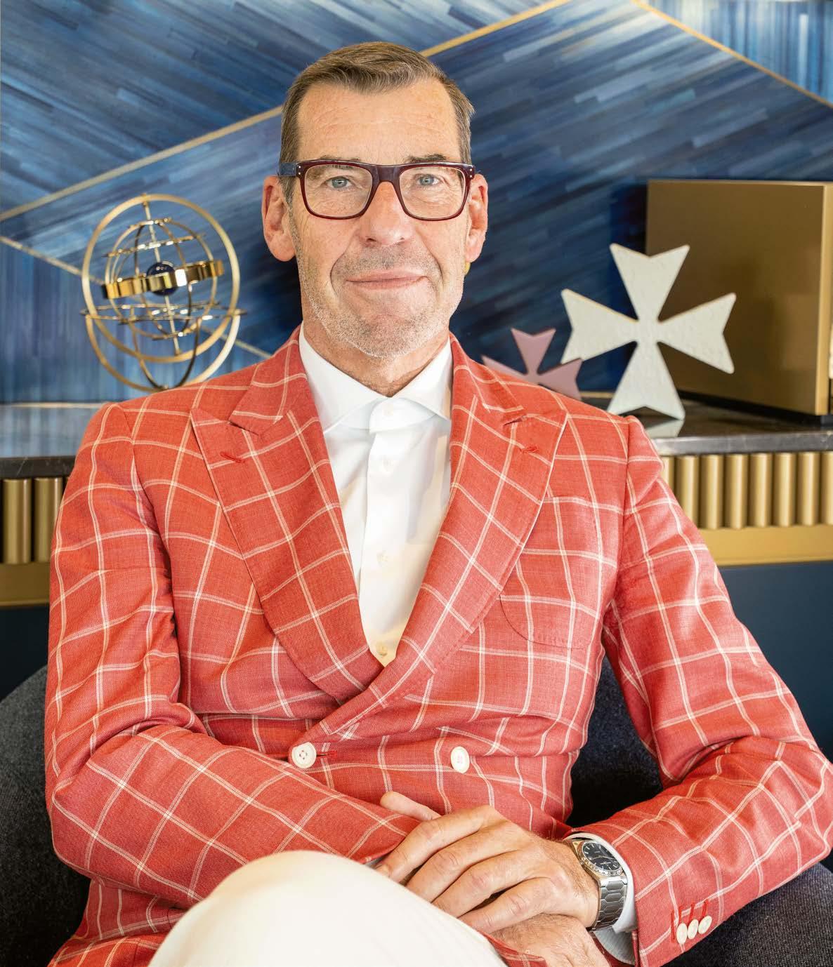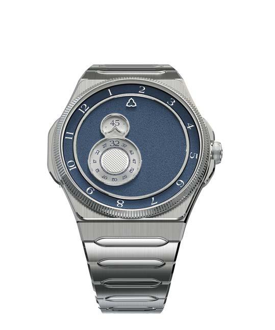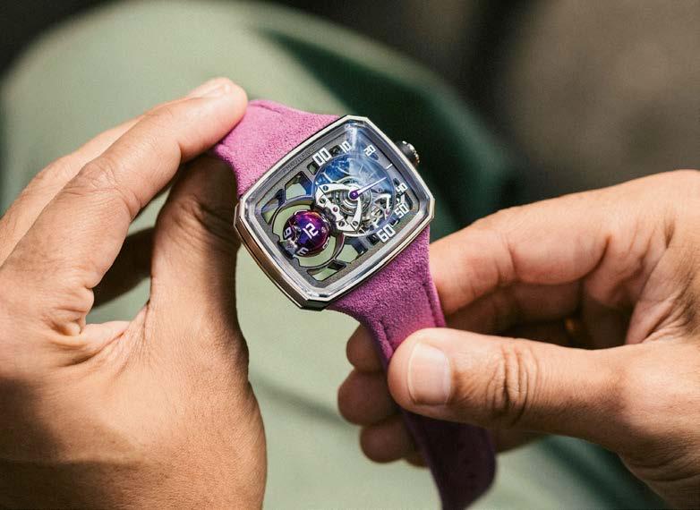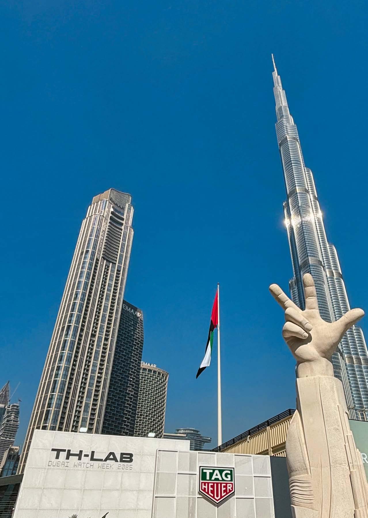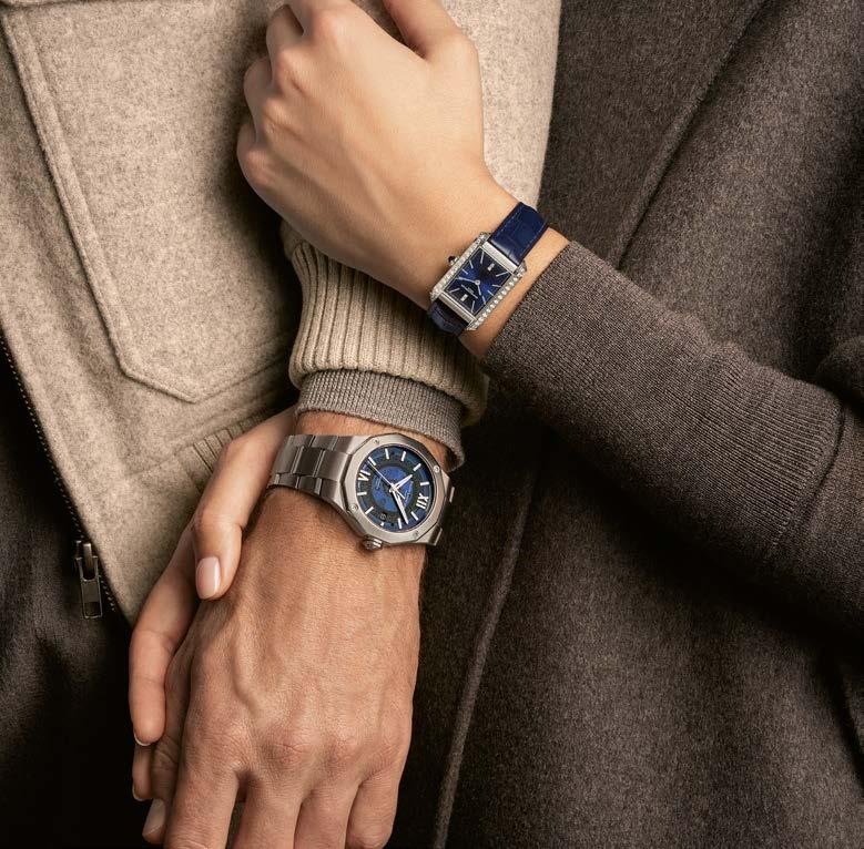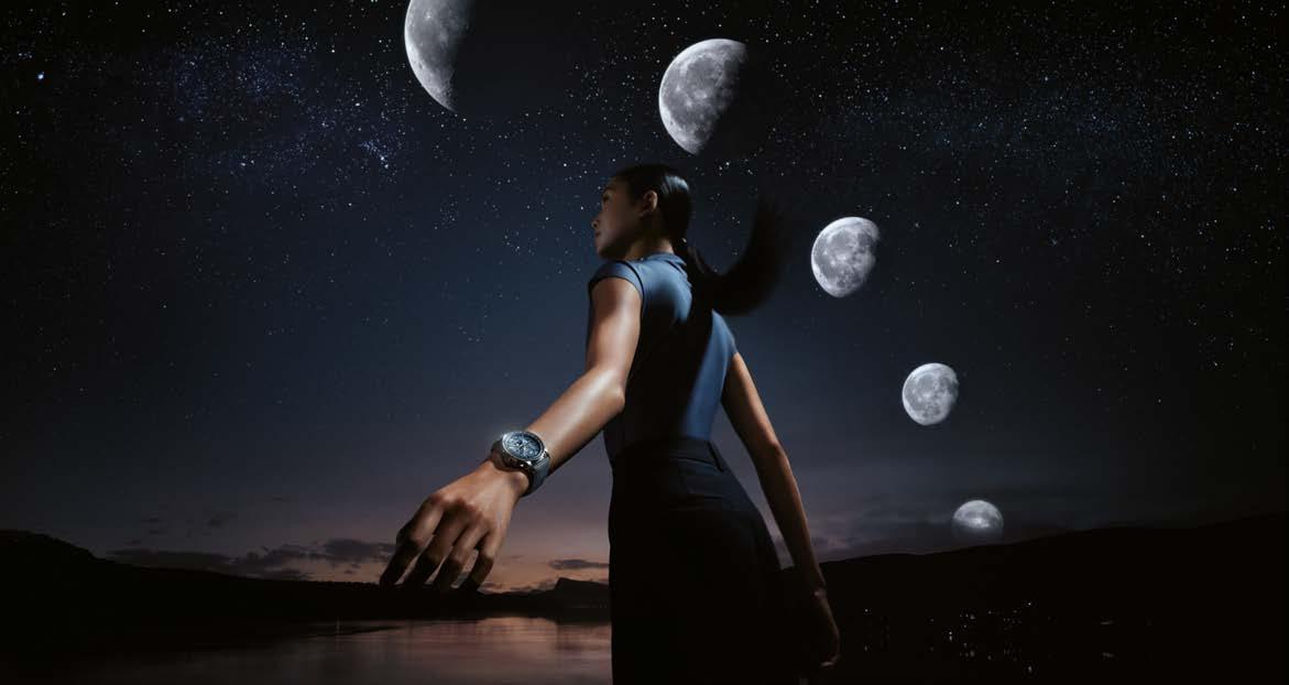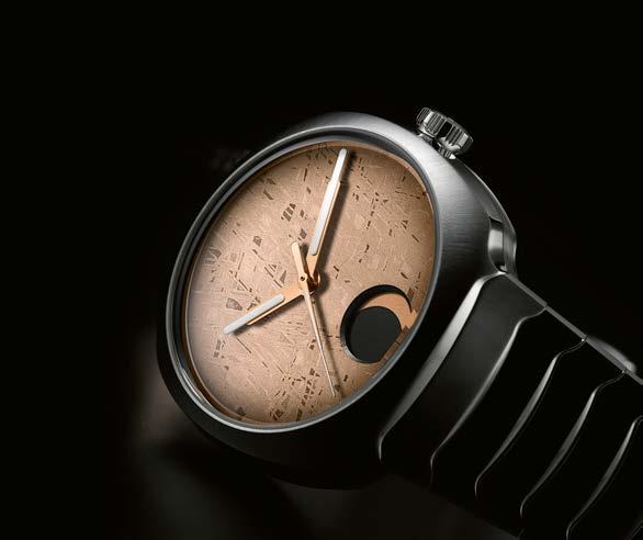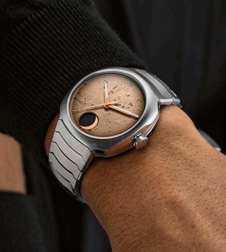 As for Schaffhausen-based brand H. Moser & Cie., it aligned itself with Dubai time by welcoming customers and media representatives to the pop-up terrace of Dubai’s gourmet Home Bakery in front of the main building. It was here that CEO Edouard Meylan presented the Streamliner Perpetual Moon Concept Meteorite (see page 75), featuring a new automatic movement and a meteorite dial, which involved dozens of trials before achieving the desired shade. He expressed his amazement that DWW has evolved from a local to a regional and then a global event in ten years, exuding “incredible, positive energy, strongly focused on end clients. Complete with the Burj Khalifa, the surrounding bars and restaurants and even the fountains, as well as the sunny weather, the setting adds an “entertainment” aspect that you don’t find at closed shows.”