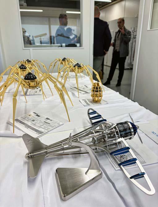 Why did Cartier become the world’s second-largest watchmaker and why was the small clock manufacturer L’Épée 1839 acquired by LVMH? Wednesday revealed the answers. The Cartier experience took place in two stages, unveiling the two facets of the watchmaking giant: the ability to industrialize its production in a highperformance 32,000sqm Manufacture (currently being expanded as its 800 employees are a little cramped); along with vast expertise in fine watchmaking and jewelry in a Maison des Métiers d’Art nestled in a centuries-old farmhouse just a few minutes’ walk away. The yin and yang of a brand that has made special-shaped watches the spearhead of its success and which did not hesitate to offer a behind-the-scenes look at its achievements. This included an explanation of its aesthetic codes, production processes and the logic behind the machine fleets, a discussion with artisans involved in watchmaking and various artistic crafts, as well as a debriefing lunch with the teams at the Maison des Métiers d’Art. There was a radical change of scenery in the afternoon, when the CEO of mechanical clockmaker L’Épée 1839 warmly welcomed the visitors to Delémont’s artisan district. During the visit, Arnaud Nicolas provided a wealth of fun stories and production secrets, simply asking participants not to take photos of creations made for third parties. The last Swiss manufacturer of mechanical clocks has distinguished itself through its collaborations with MB&F and more recently with Vacheron Constantin for the creation of La Quête du Temps exhibited at the Louvre; while diversifying through mechanical art creations and clocks featuring highly contemporary designs and peerless finishing.