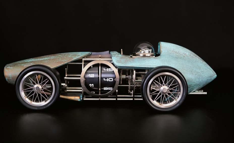 L’Épée 1839 et Chris Alexander explorent le temps et les matériaux dans cette série qui allie mécanique de précision et expression artis tique. Des montres-sculptures uniques en leur genre, qui mettent à l’honneur les voitures de course vintage. (PE)