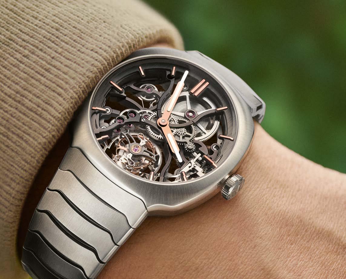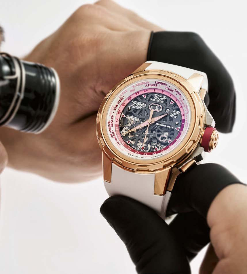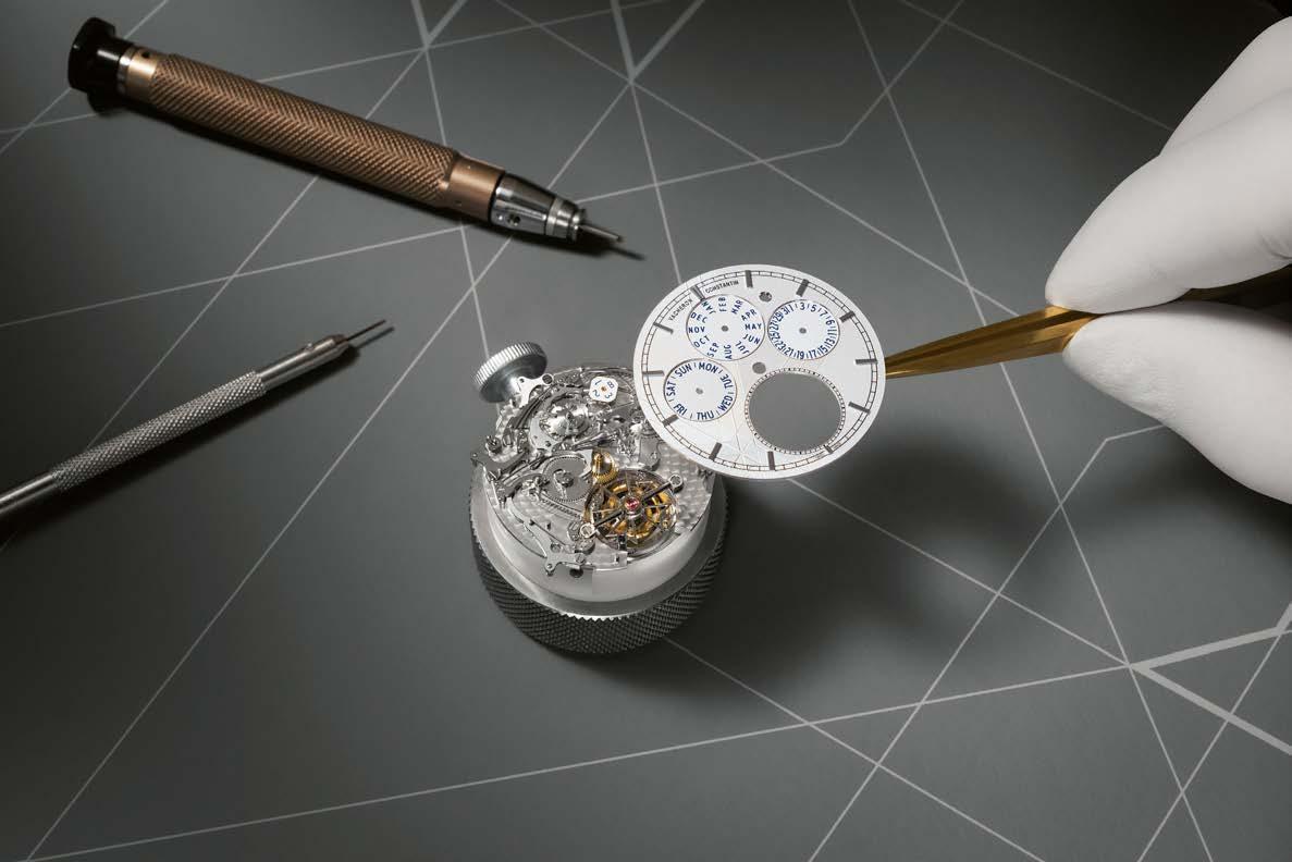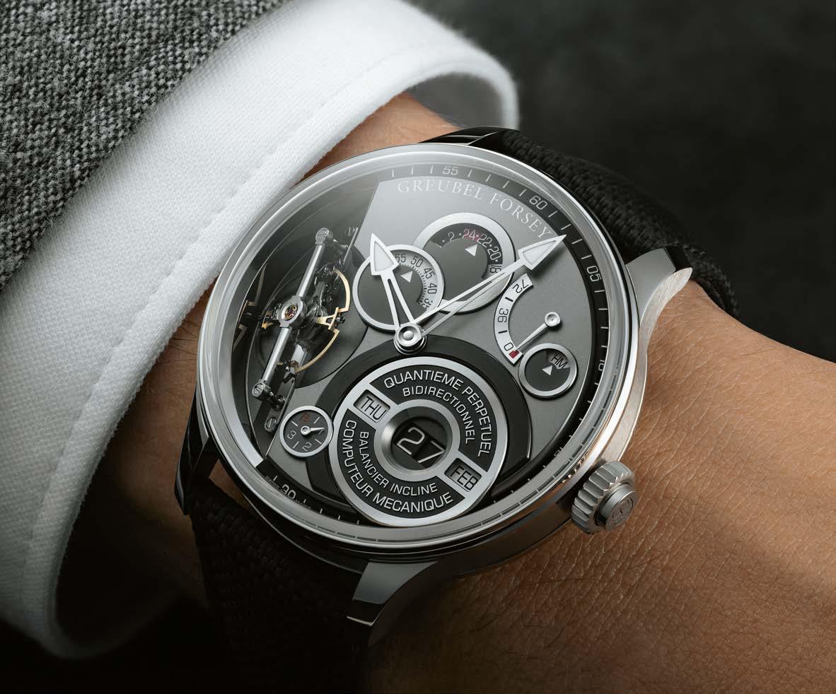 all-important desire that leads to the act of purchase. This is confirmed by the comments of three CEOs (representing the three key groups active in watchmaking) who analyze their brands’ approach; in our “Innovation” feature on materials; as well as by the Grand Prix d’Horlogerie de Genève for which we present the prize-winners. Similarly, this observation is striking when admiring Audemars Piguet's RD#5 featured on our cover: a pure distillation of expertise closely combining ergonomics with horological ingenuity. Pushing boundaries and surprising aficionados was Vacheron Constantin’s leitmotif in this commemorative year – to an unprecedented degree. The Manufacture opened its doors, its drawers and its heart to us. Ours is beating at 100 miles an hour.
