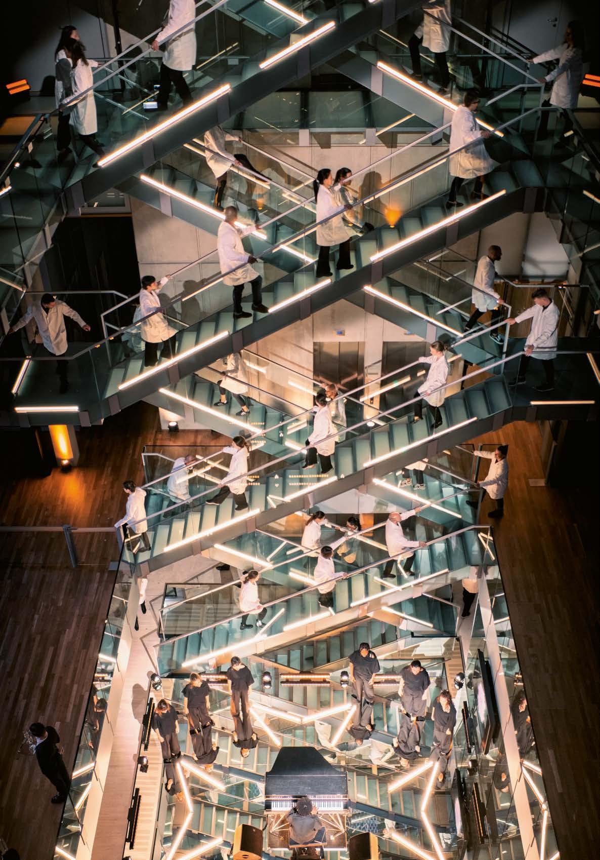 Inside, visitors are welcomed into an entrance hall picking up the Arc’s architectural elements, notably expressed through a glittering mobile hanging from the ceiling. Across the different levels and stages of watch production, everything has been designed to optimize production flows and the quality of life of the various teams in the workplace. The workshops are interspersed with numerous open, welcoming spaces for interaction (lounges, cafeterias). This comfortable working environment is also enhanced by high-tech tools supporting artisans and enabling them to focus on their expertise. Without giving away any design secrets, it is worth mentioning a superb system equipped with 66 robots and shuttles designed for component storage and distribution in various workshops. Standing 15 meters high and capable of performing 350 movements per hour, this automated tool “learns” and will triple its productivity in five years. The respect for employees and the love of fine products represented in this Manufacture go hand in hand with a commitment to sustainable development and local social ties that are illustrated in many ways, all perfectly in line with Audemars Piguet’s DNA.