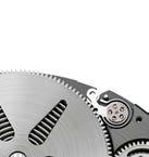 Le chronographe suit le même principe. « Pour réduire la course des poussoirs, nous avons essentiellement revu le fonctionnement du système de remise à zéro et remplacé le binôme cœur et marteau traditionnel, déclare Giulio Papi, directeur de la conception horlogère. Il est efficace, mais pas efficient. 70 % à 80 % de l’énergie impulsée par le doigt est dissipée. Nous avons donc opté pour un nouveau duo : pignon et crémaillère. La course est minimale. On ne perd qu’environ 10 % d’énergie. Et par la modification d’un seul rouage, on obtient un chrono à saut instantané. Cela concourt aussi à une meilleure ergonomie d’usage, car il est plus simple à lire. »