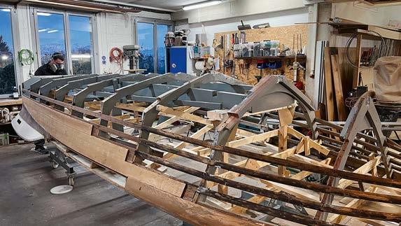 In den Werkstätten von Augustin Lépine geht es stets hoch her. Die nächsten Projekte warten bereits. Neben Restaurierungen werden auch immer wieder neue Boote gebaut und andere eingewintert. Jetzt gerade wird ein Pedrazzini Aquamar Special. instand gesetzt. Auch an diesem Boot hat der Zahn der Zeit genagt, bevor es in die Hände von Wood & Boat gelangte. Nach einer Havarie wurde es komplett ausgebeint. Es wird in der nächsten Saison auf dem Genfersee bestimmt alle Blicke auf sich ziehen. Auch die deutlich jüngere One-Off-Jacht Miss Geneva wird garantiert für Aufsehen sorgen. Wood & Boat verpasst ihr gerade ein komplettes Refit: «Wir behalten nur den Rumpf und ändern alles», sagt Auguste Lépine. In Meinier kommt keine Routine auf. Auf ein einzigartiges Projekt folgt ein nächstes, das genauso einmalig ist.