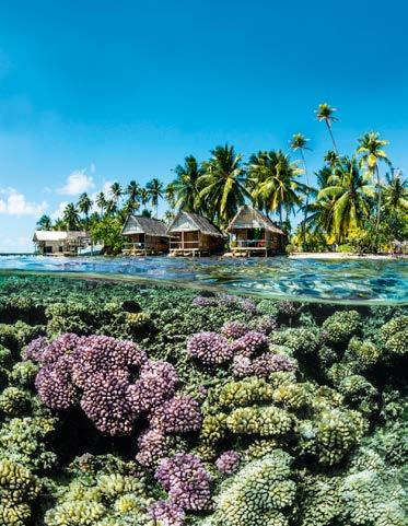 Der Ozean als starkes Band, die Geschichte als Kompass Die untrennbar mit dem Meer verbundene Kultur Französisch-Polynesiens konnte sich dank der grossen Entfernung zu den westlichen Metropolen bis heute bewahren. Obschon sich die Fachwelt noch immer über Ursprung und Chronologie der grossen Migrationsbewegungen streitet, herrscht Einigkeit darüber, dass die paradiesischen Inseln einst von einem aussergewöhnlichen Seefahrervolk besiedelt wurden. In ihren DoppelrumpfPirogen, ohne moderne Instrumente, allein geleitet von Sternen, Vögeln, Wolken und Wellen, überquerten sie unermessliche Distanzen und schufen über Millionen von Quadratkilometern hinweg ein faszinierendes, durch den Ozean verbundenes Netz kleiner Gemeinschaften, das Abenteuerhungrige und Menschen mit Fernweh in seinen Bann zieht.