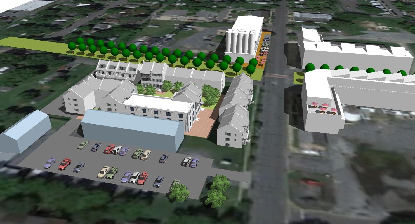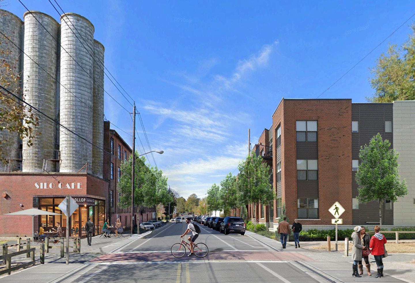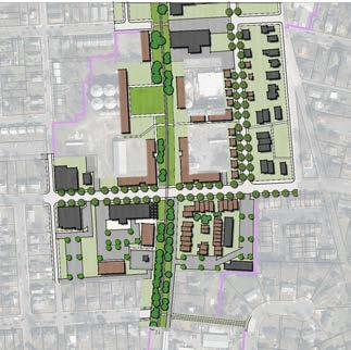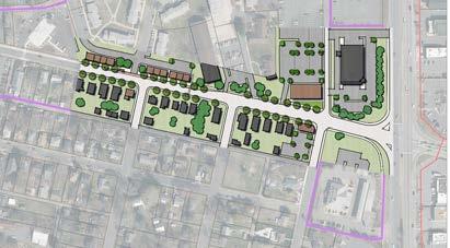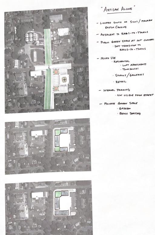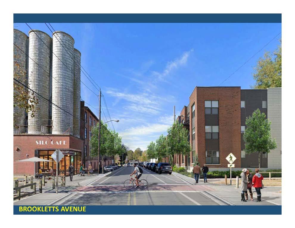 The report’s recommendations include tightening regulatory parameters to better and more consistently encourage the development of more “missing middle” housing types (missing middle being defined as those housing types between single-family on the lower end of the density spectrum, and large-scale multifamily on the other, which used to comprise a significant percentage of the housing units produced in prewar communities), as permitted and described in the Zoning Code and Comprehensive plan, as well as small-scale “work-live” commercial uses as an ancillary building type within and adjacent to, the Study Area’s historic industrial corridor lining both sides of the Rails-to-Trails greenway, and also for a proposed “Artist’s Village,” along Brookletts Avenue.