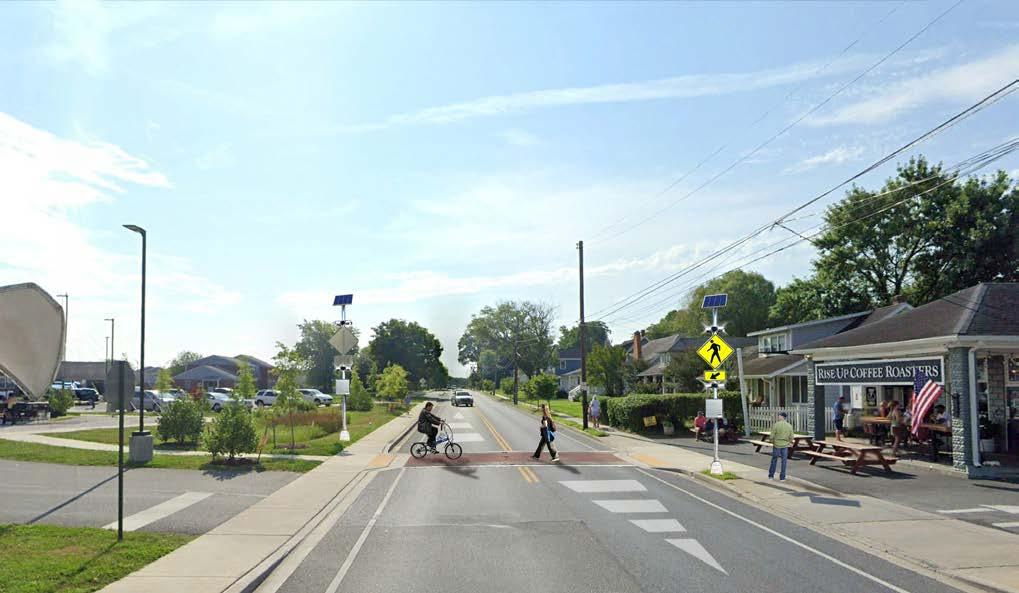 • Should the Town provide a mid-block crosswalk to promote pedestrian activity between the shops?