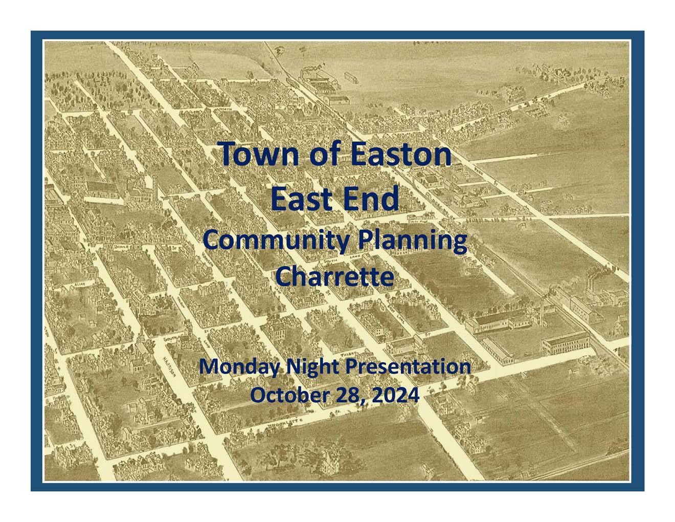Easton has seen many changes since it’s birth. The evolution of the “East End” is yet another phase of change for the Town. This summary of the October 2024 Charrette is an attempt to inform and offer suggestions for the next great addition to the Town.