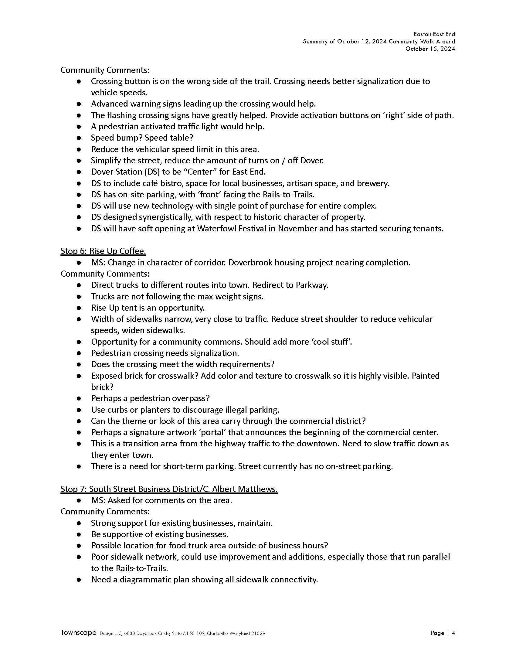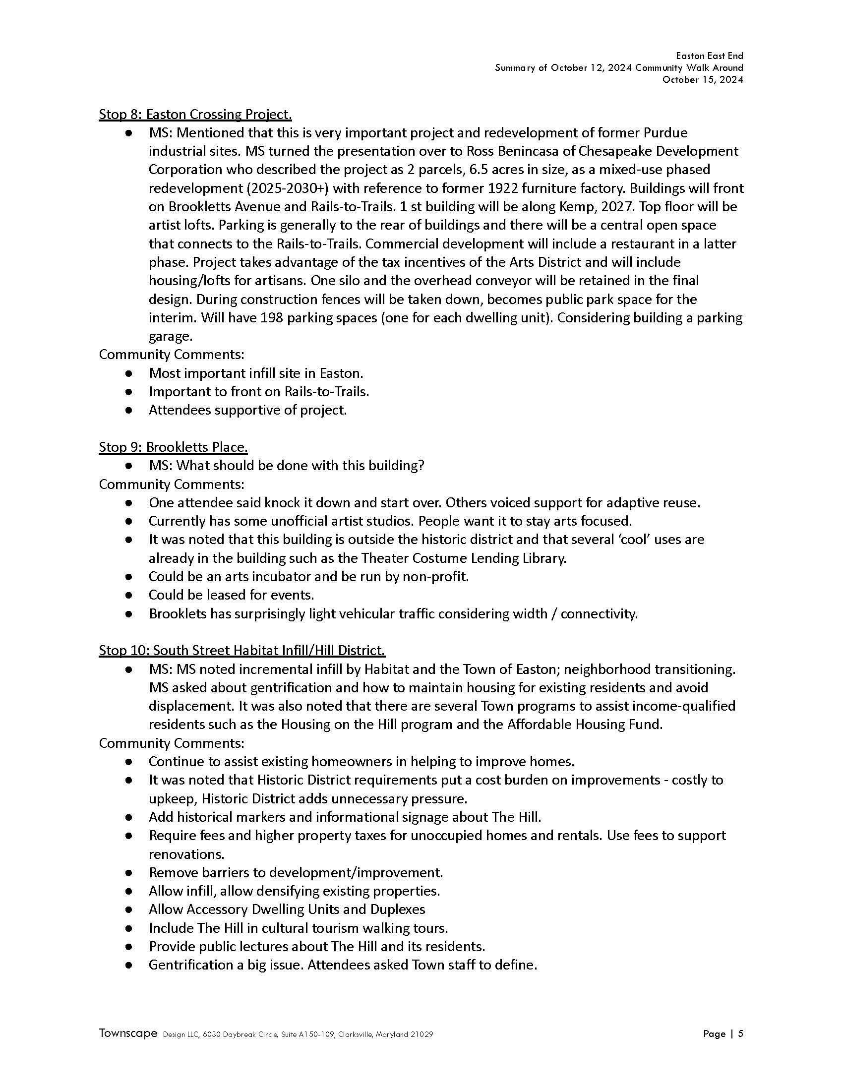 The Town of Easton Planning and Zoning Department sponsored a "Neighborhood Walkaround" of portions of the Easton East End Study Area on October 12, 2024. The walk was in support of a planning initiative by theTown called the East End Small Area Plan and the upcoming charrette to be held October 24-28, 2024.