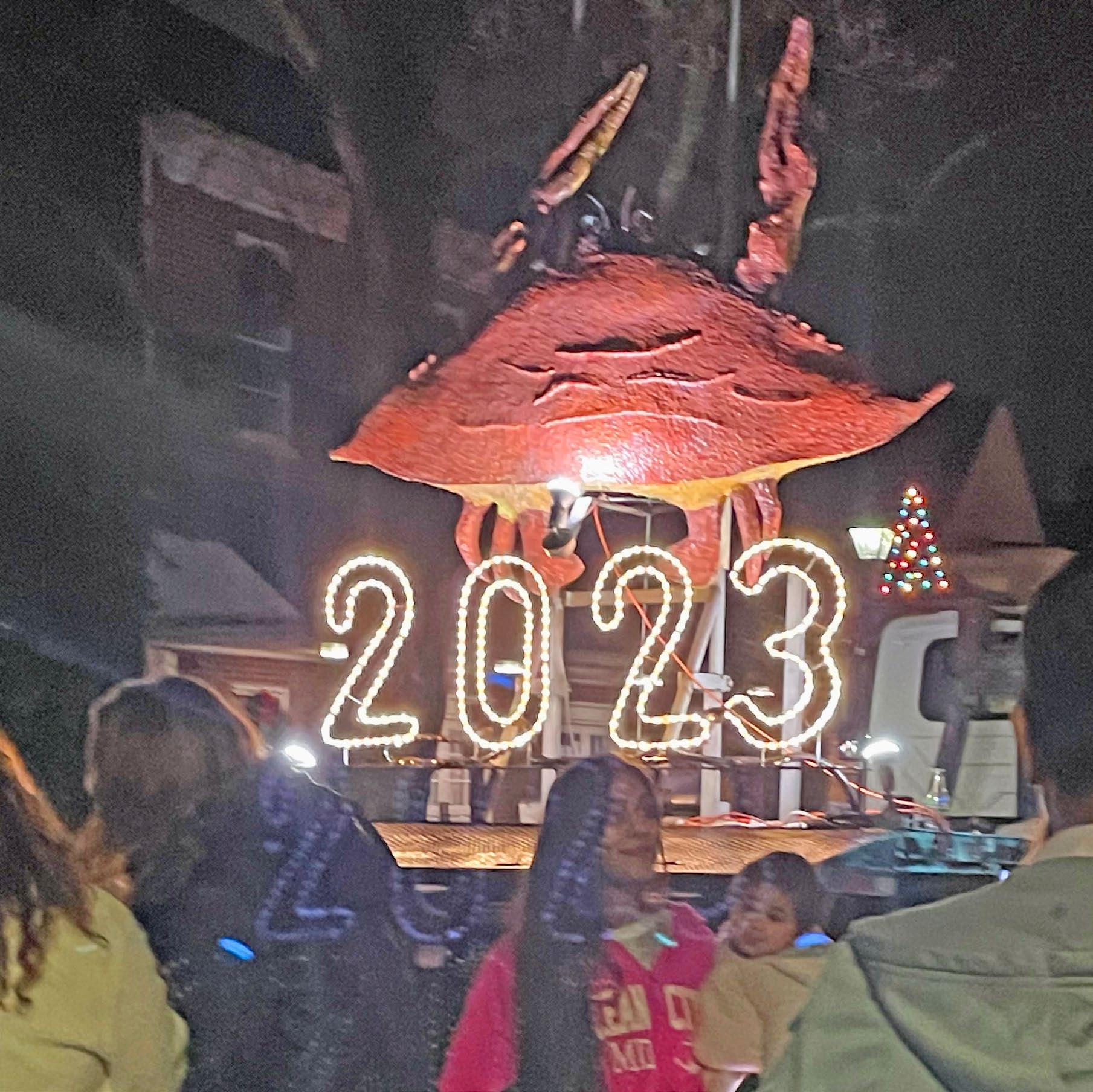 Performances included a juggler and a puppet show for the children. Around 1,000 residents and visitors attended the 9:00 PM crab drop. While less attended, the midnight crab drop still drew around 200 spectators. Everyone enjoyed