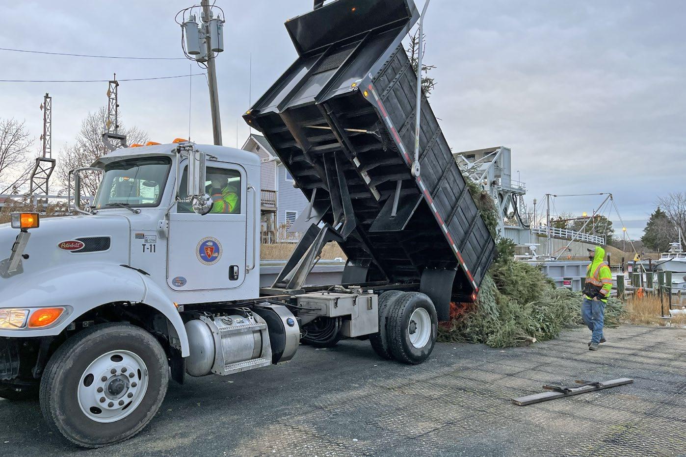 After collecting the disposed trees, the Public Works team takes select trees (between 100150) and load them into trucks to be taken to the wharf in Tilghman Island.