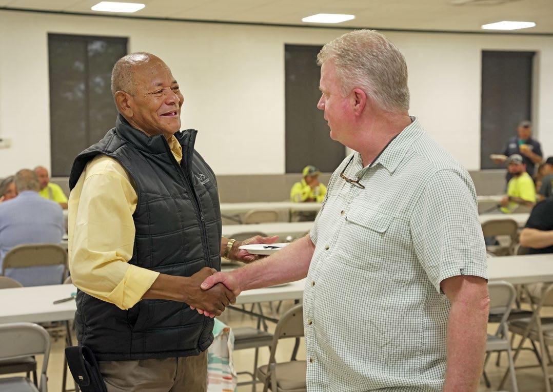 The Public Works Department, as well as many members of the Police Department and Town Office came out to celebrate Clarence’s achievement over a delicious breakfast featuring omelettes, waffles, coffee, and more.