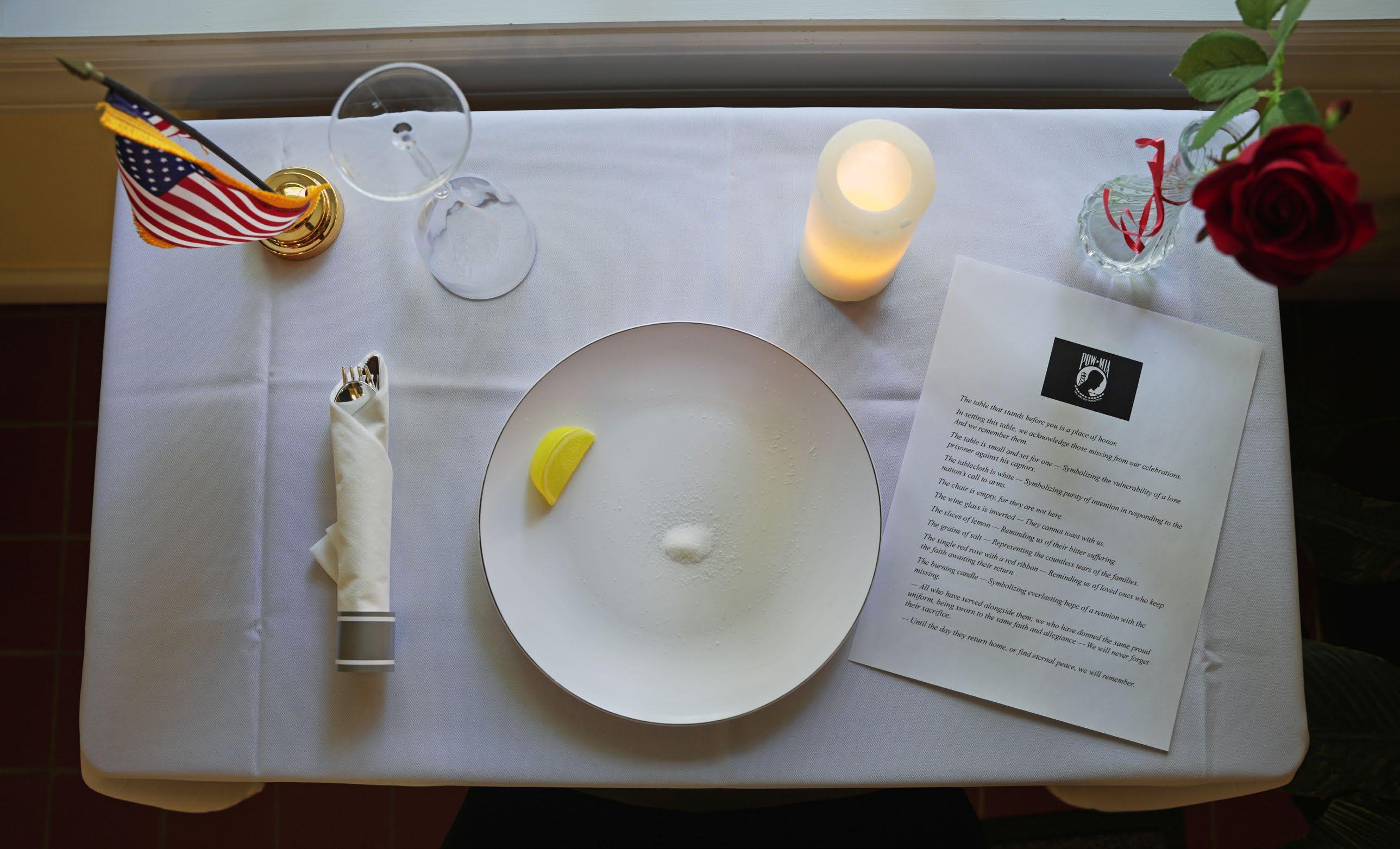 On Friday, September 20, Rick Farr, Retired USAF war veteran and Chief Human Resource Officer for the Town of Easton set up the Missing Man Table in honor of POW/MIA Recognition Day.